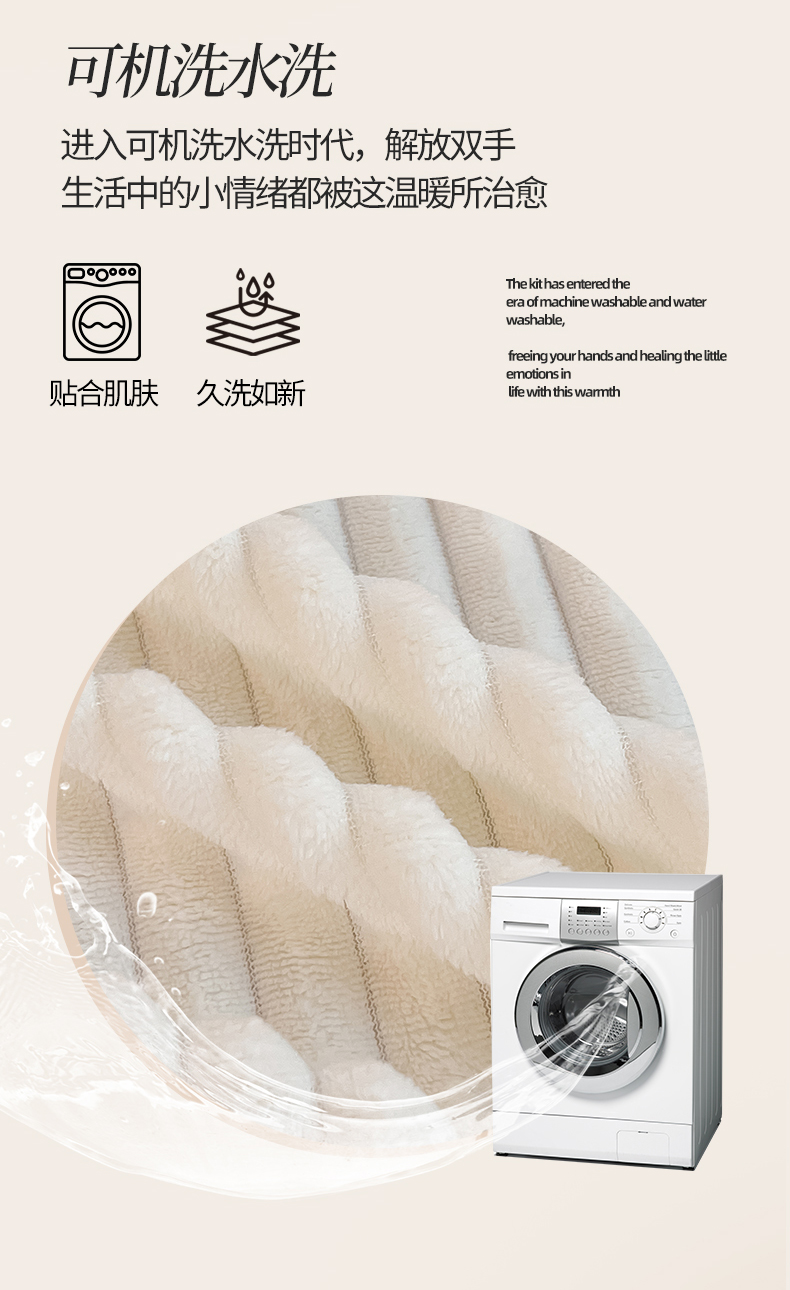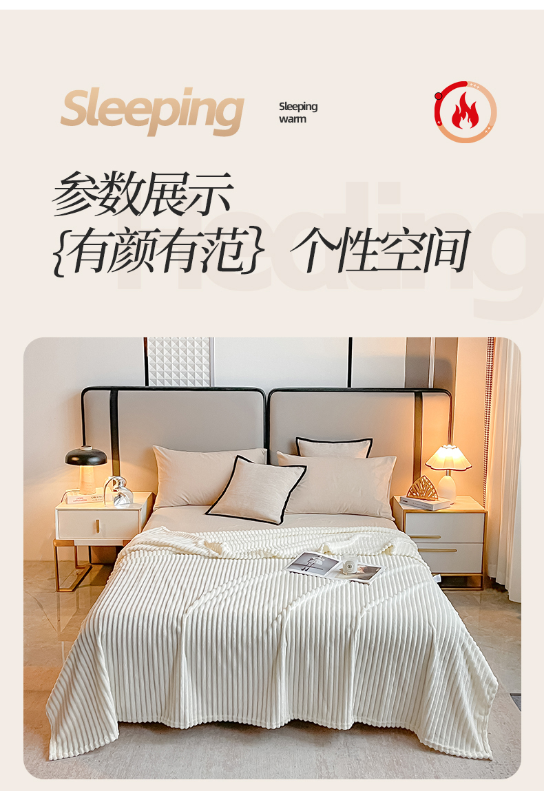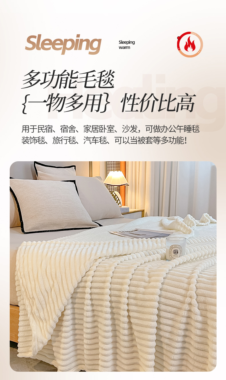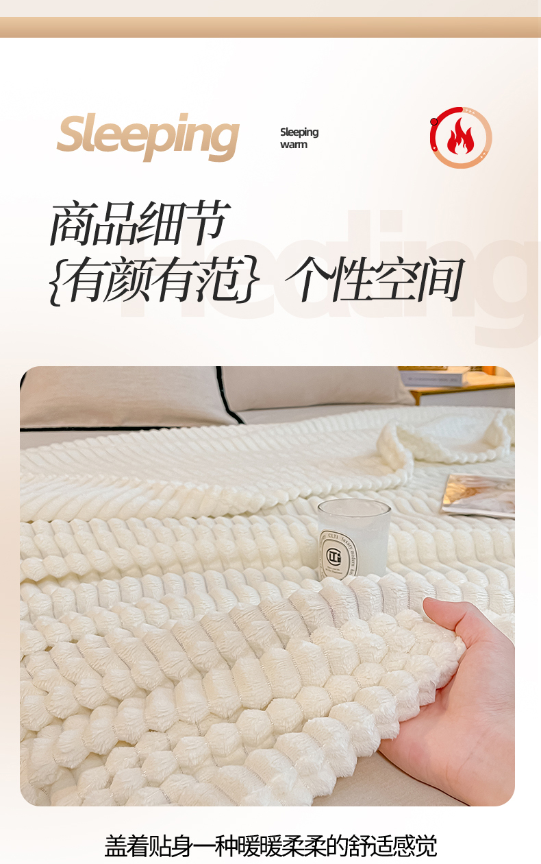 商品名称:一帆毯业 2024新款抽条压缩代发抽空跨境外贸260克兔毛珊瑚法兰绒空调毯子抽条毛毯简约牛奶绒盖毯 奶昔白