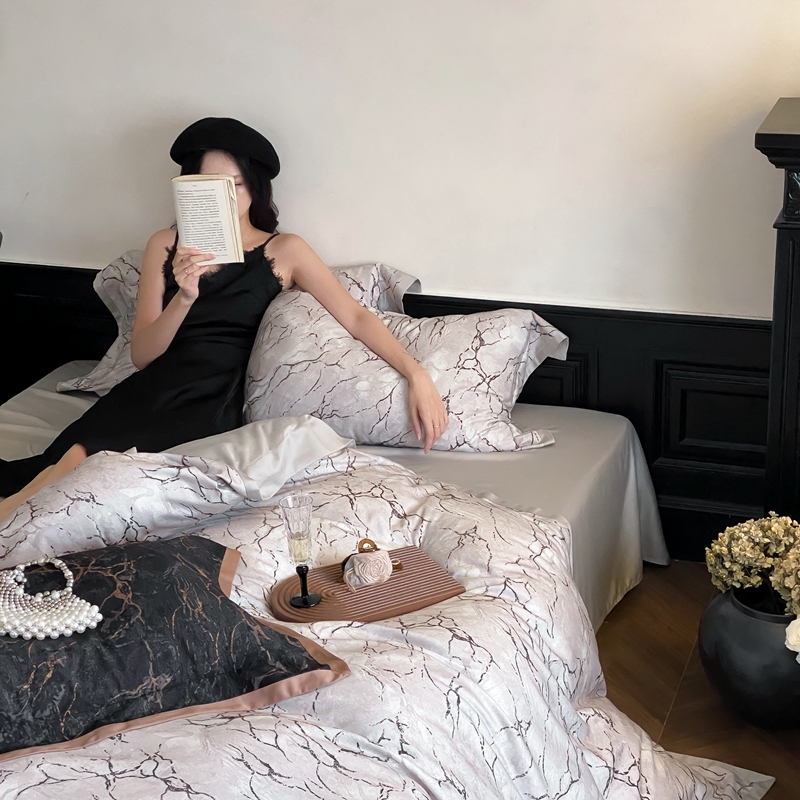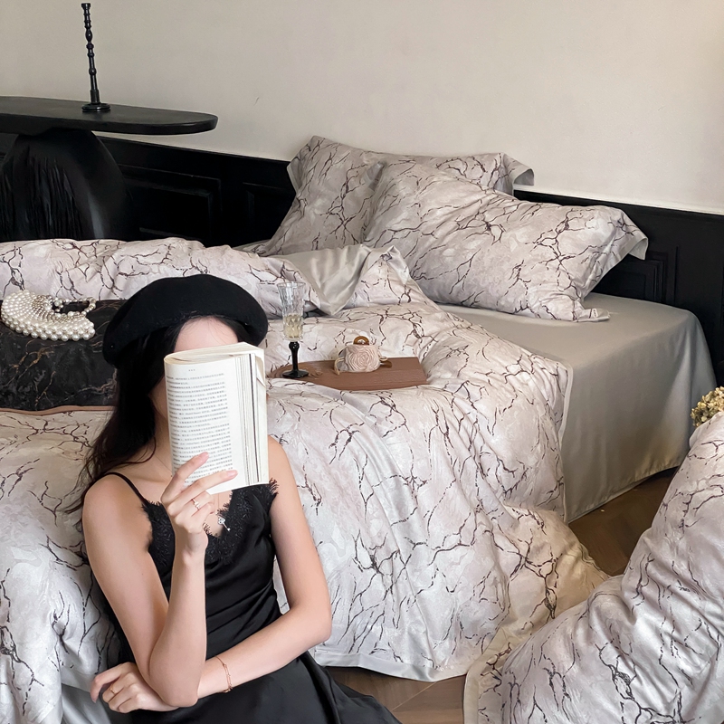 赫帛 2024新款60s数码印花天丝棉磨毛四件套-卡布里 卡布里-爵士白