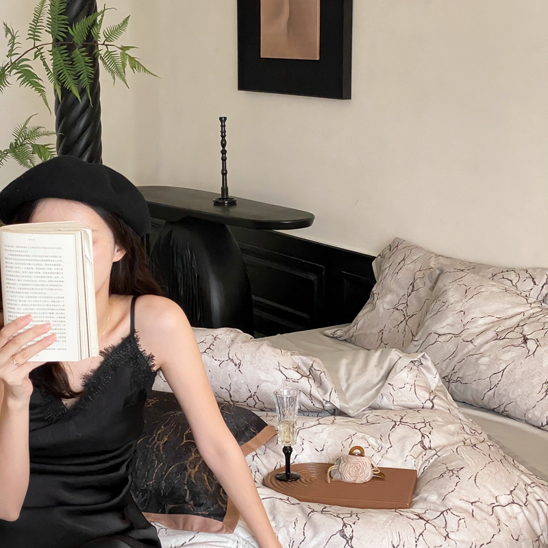 赫帛 2023新款轻奢50s缎纹数码印花长绒棉四件套 钻石波点,钻石波点