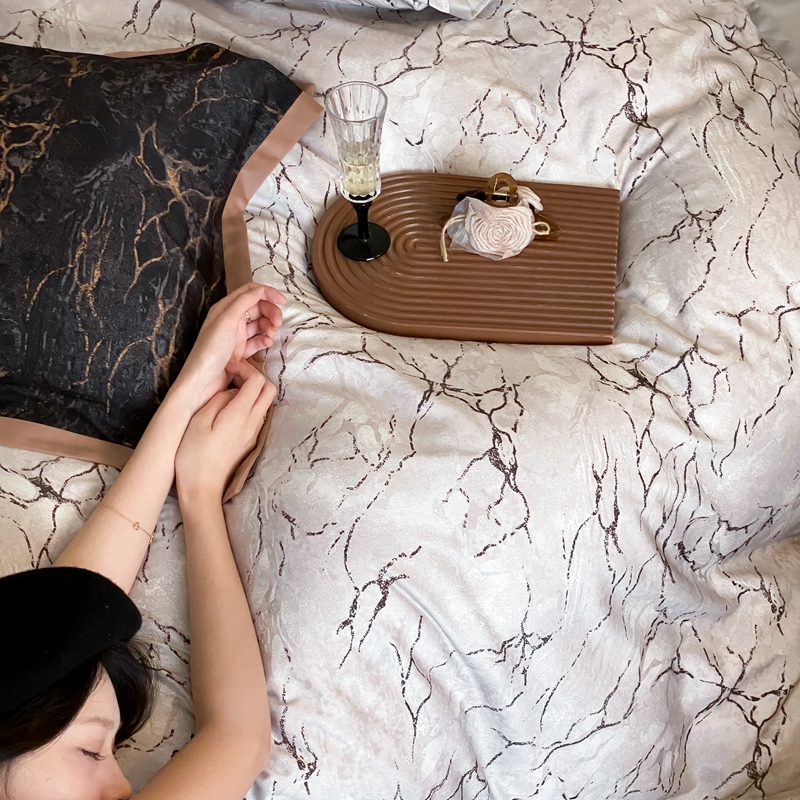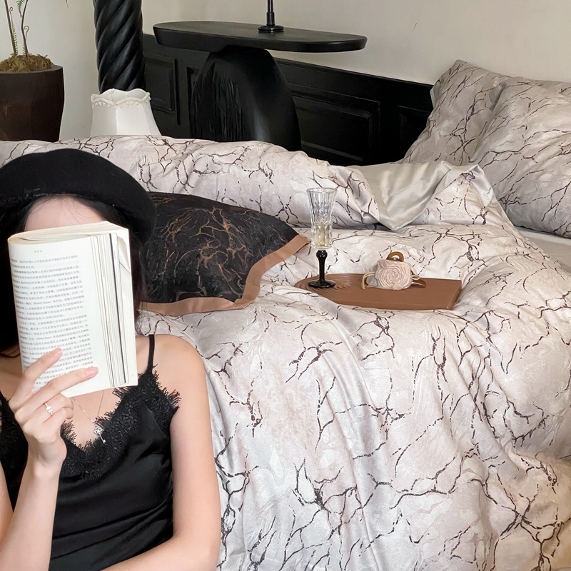 赫帛 2023新款轻奢50s缎纹数码印花长绒棉四件套 缤纷彩钻-米白,缤纷彩钻-米白