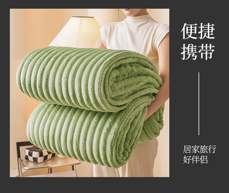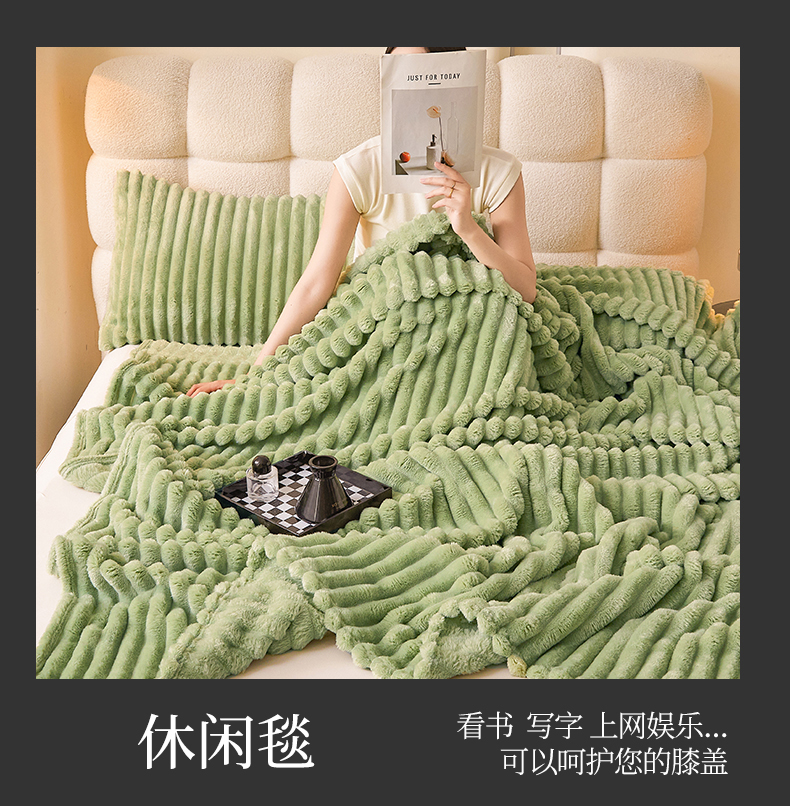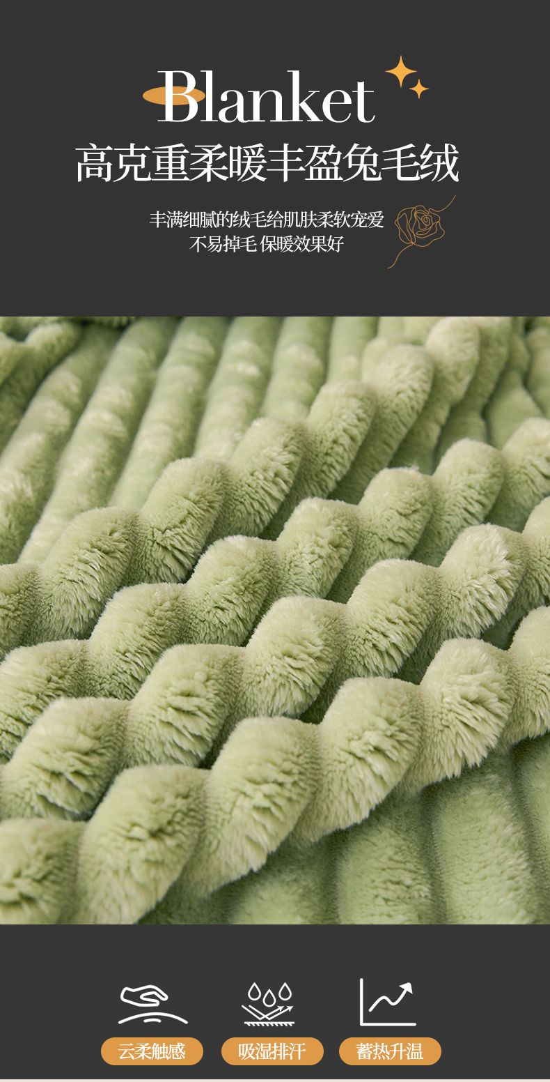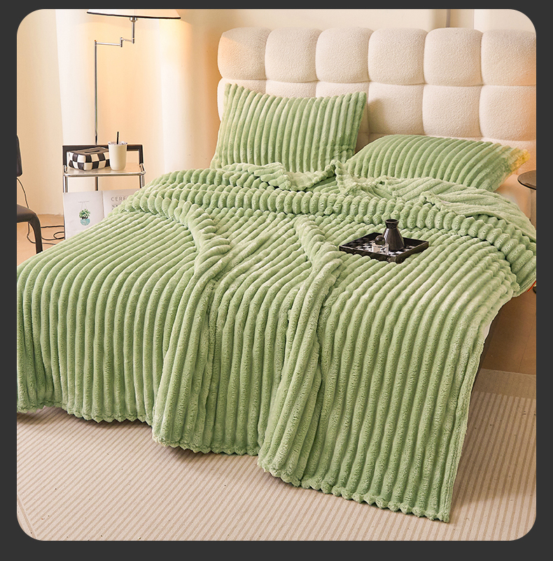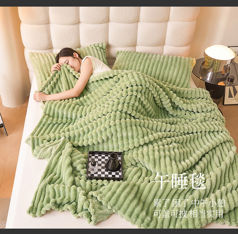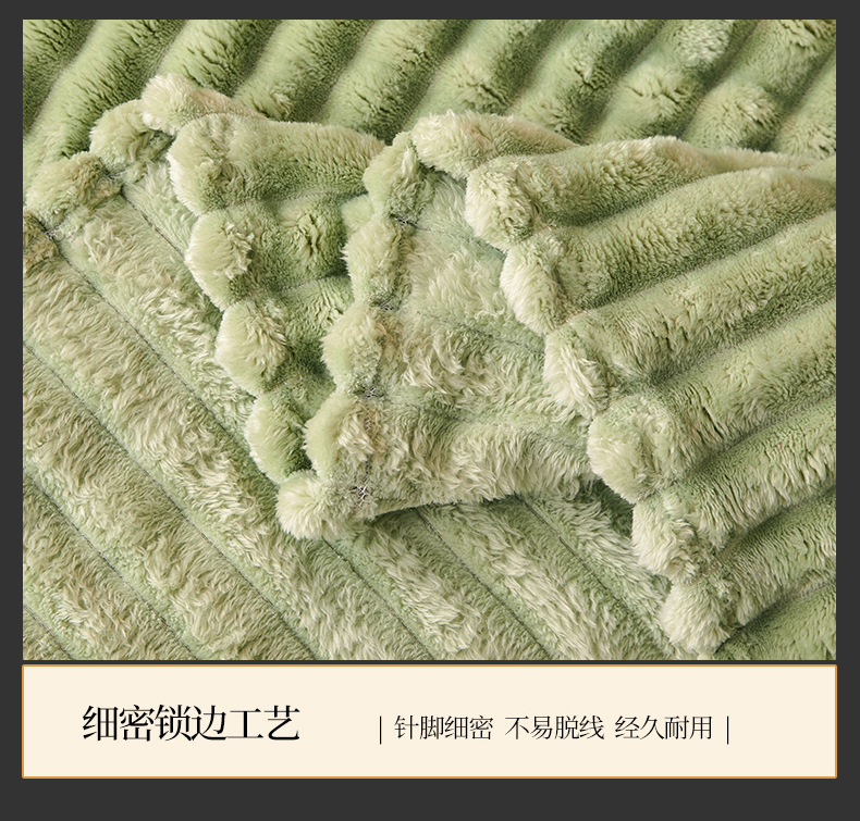 梵心家纺 跨境兔毛绒抽条毛毯高克重法兰绒毛毯跨境外贸直播 橄榄绿