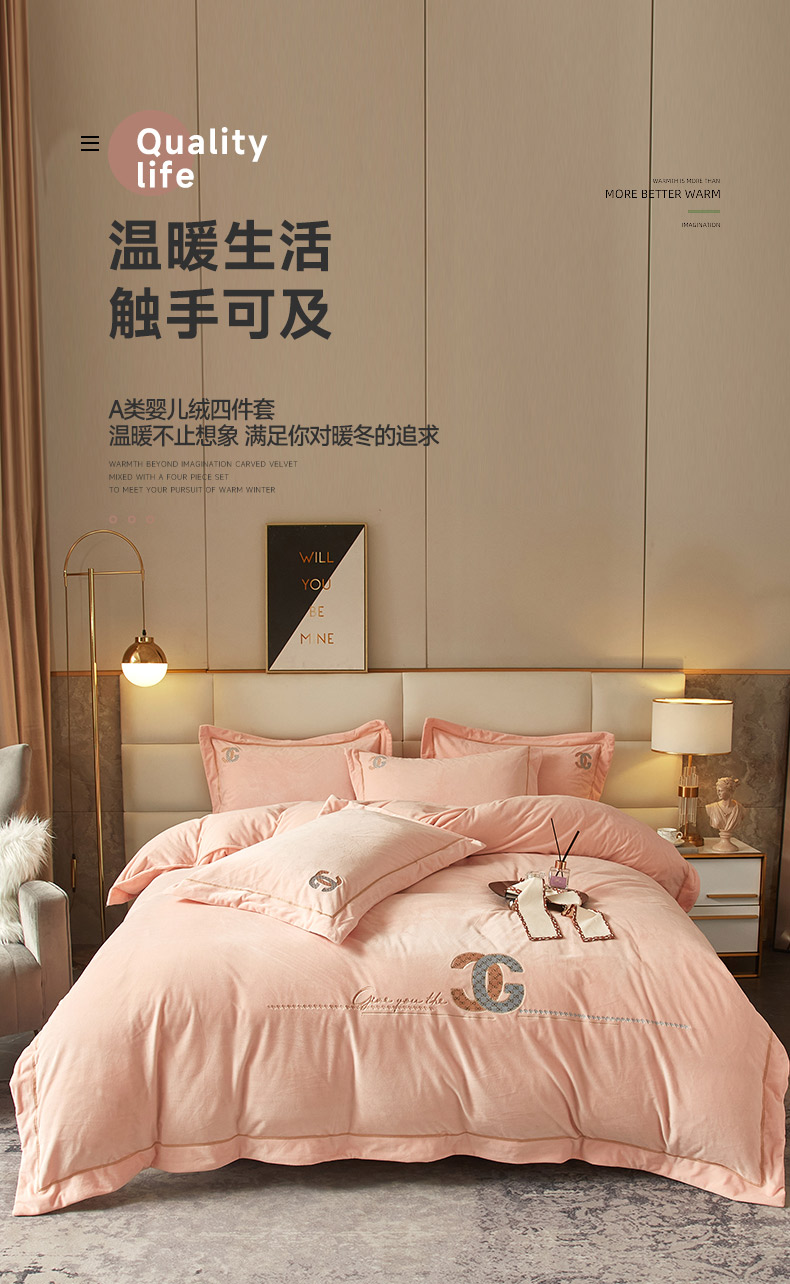 当前位置: 91家纺网 > 商品网购 > 床品套件 > 四件套 > 其它四件套 > 库里梦家纺 2024新款A类宽边婴儿绒刺绣四件套-凯瑟琳 凯瑟琳-桃粉