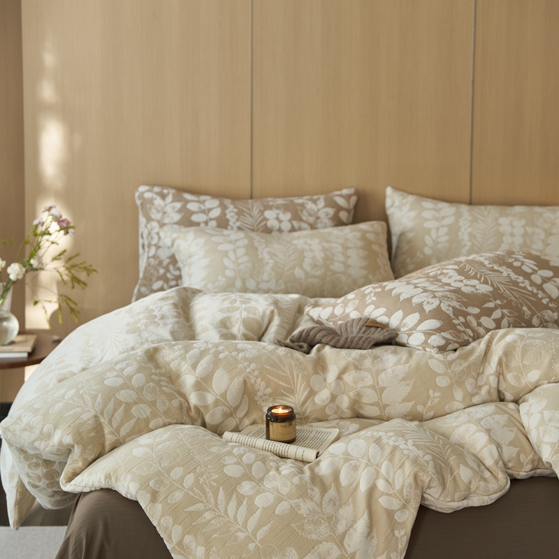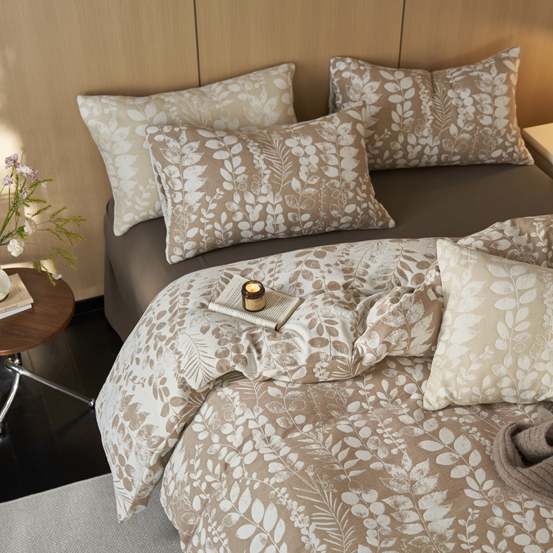 (总)简家居 2025新款20%亚麻80%棉棉麻提花四件套-常青藤,常青藤
