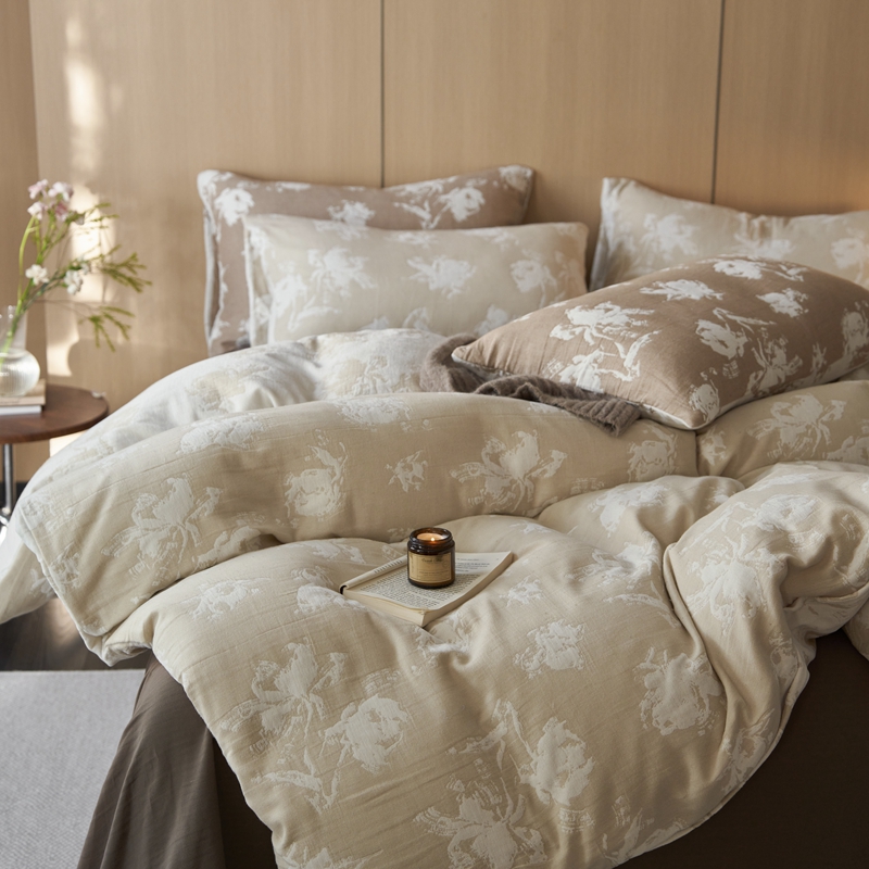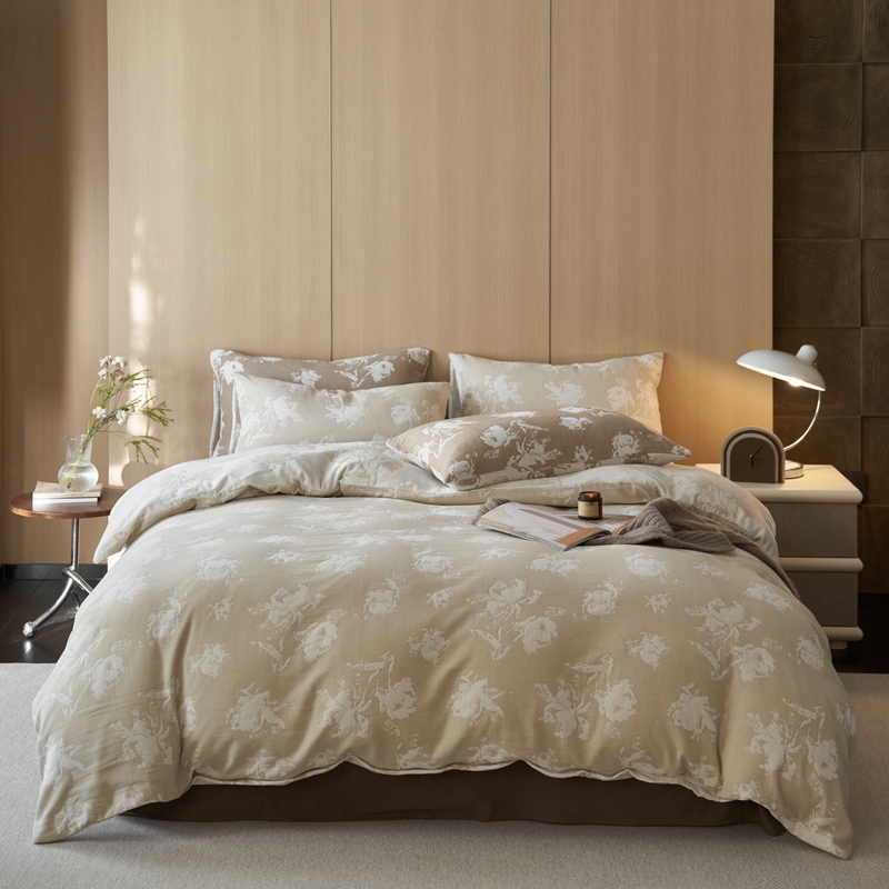 (总)简家居2025新款40支全棉色织空气棉四件套-鎏金喜韵,鎏金喜韵