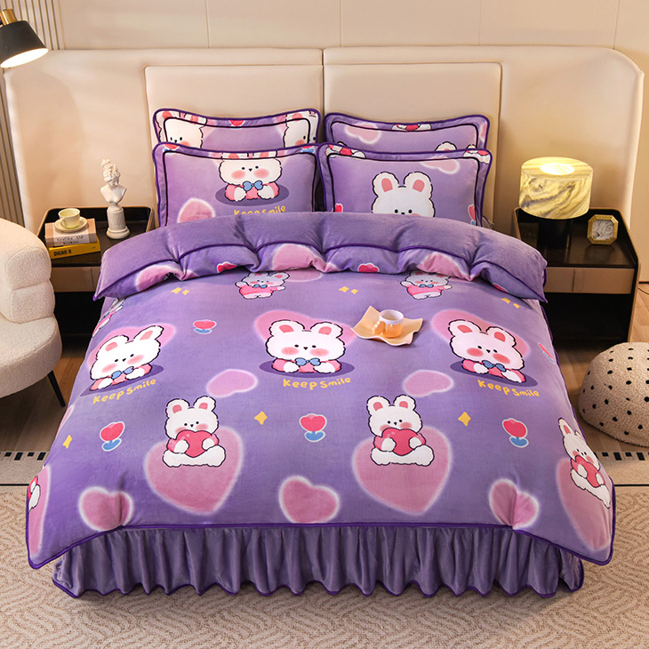 商品名称:馨梦缘 2025直播爆款8.5斤牛奶绒四件套加厚保暖床裙金貂绒 爱心小兔
