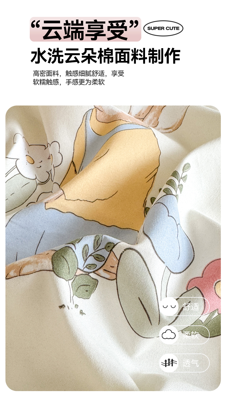 多品家纺 2025新款超柔水洗软糯云朵棉单被套 春日庄园