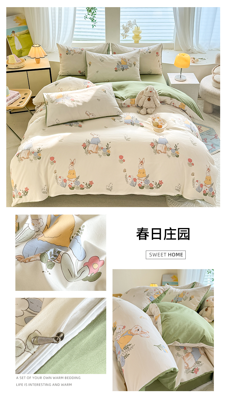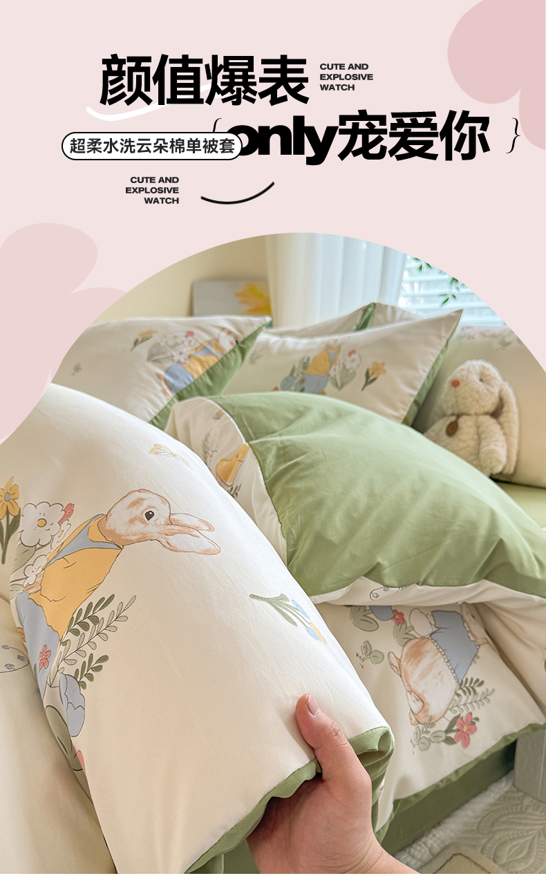 • 91家纺网 家纺一手货源 找家纺 多品家纺 2025新款超柔水洗软糯云朵棉单被套 春日庄园