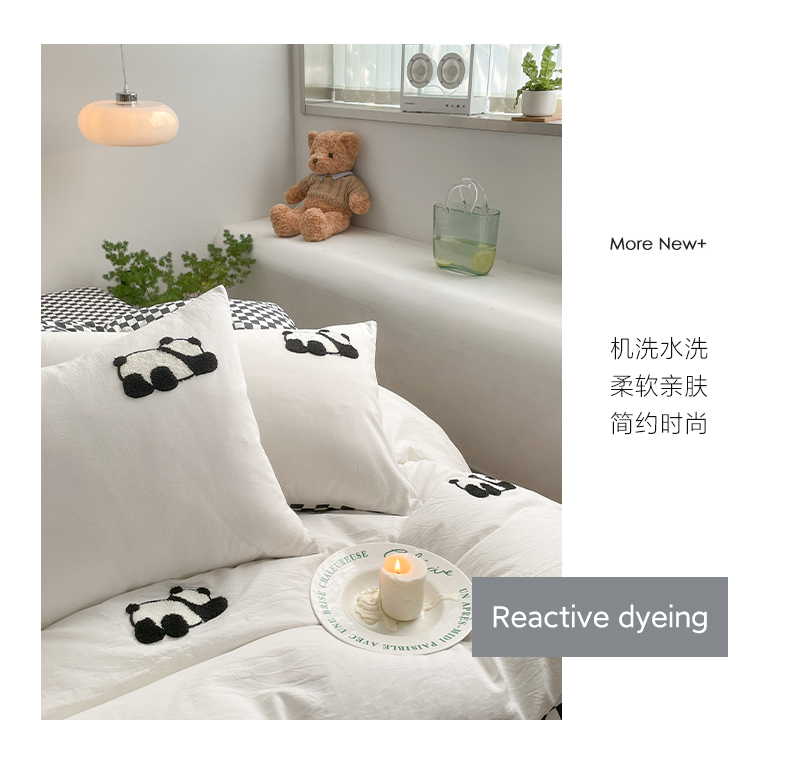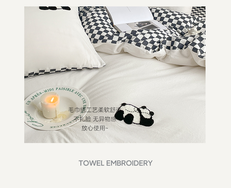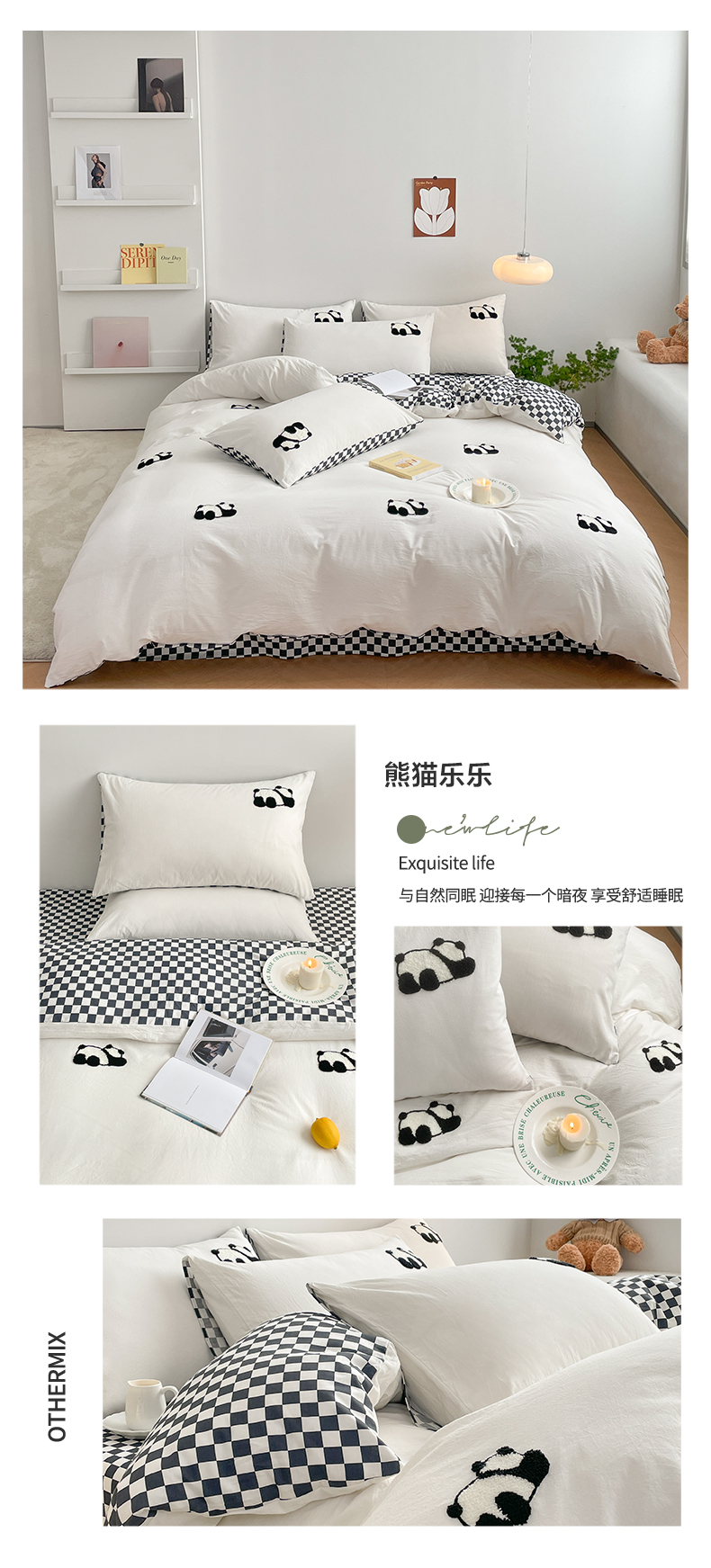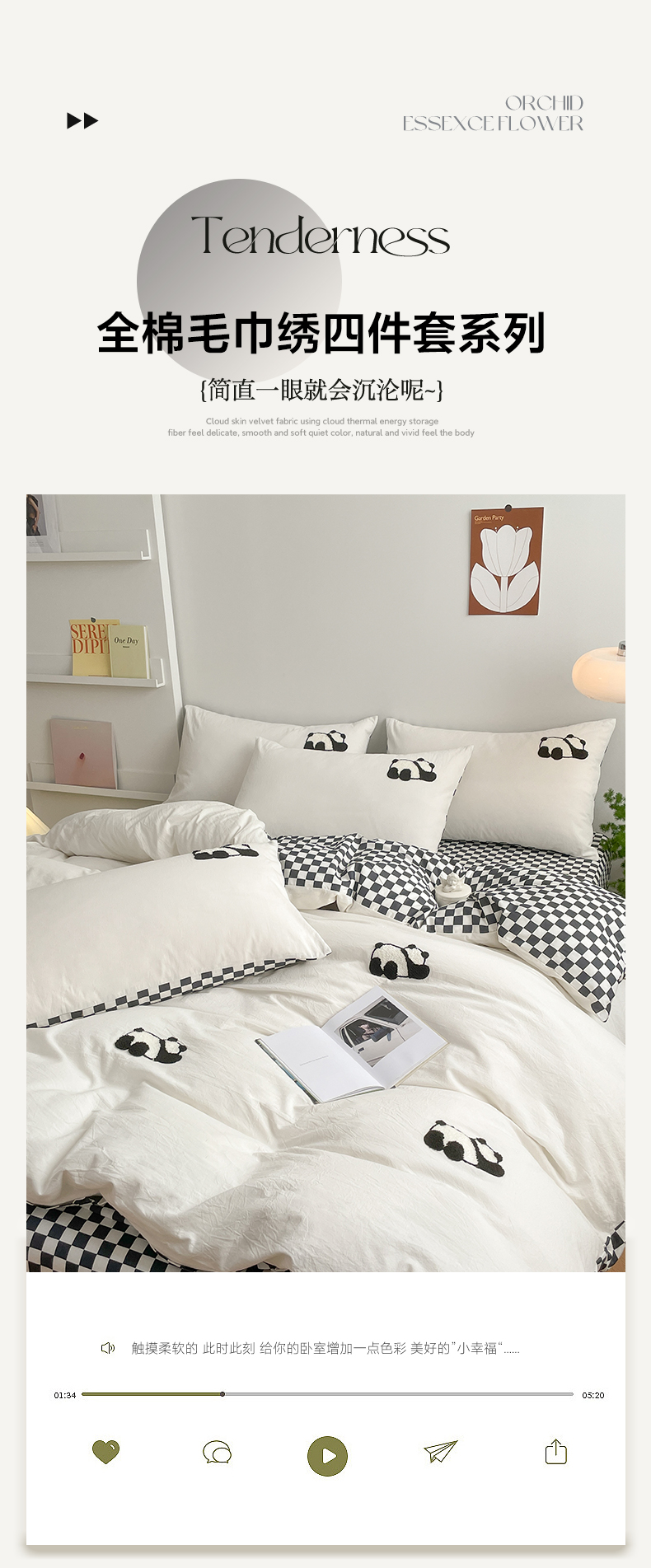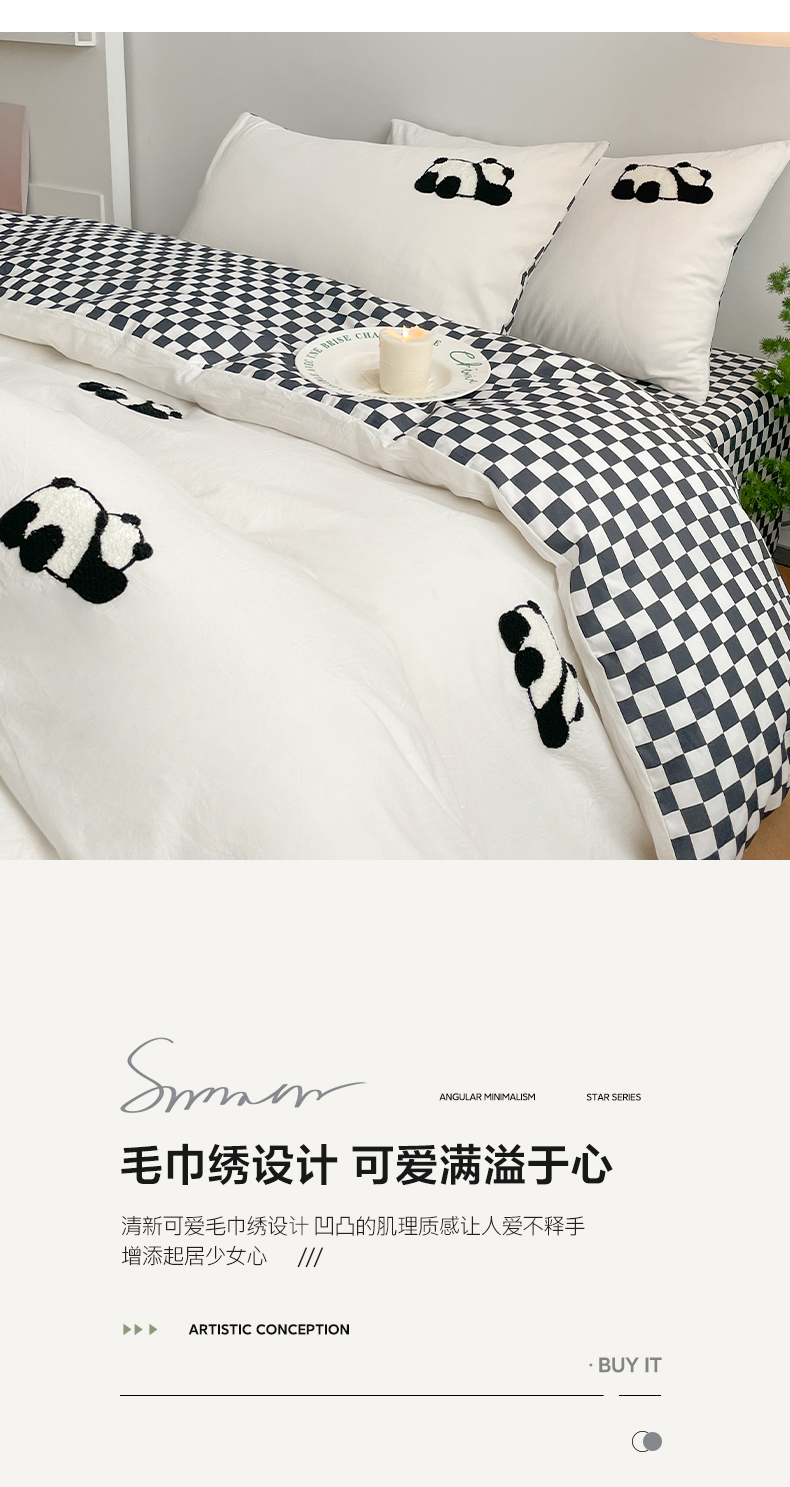 商品名称:雅居纺家纺 2025新款全棉满版毛巾绣四件套 熊猫乐乐