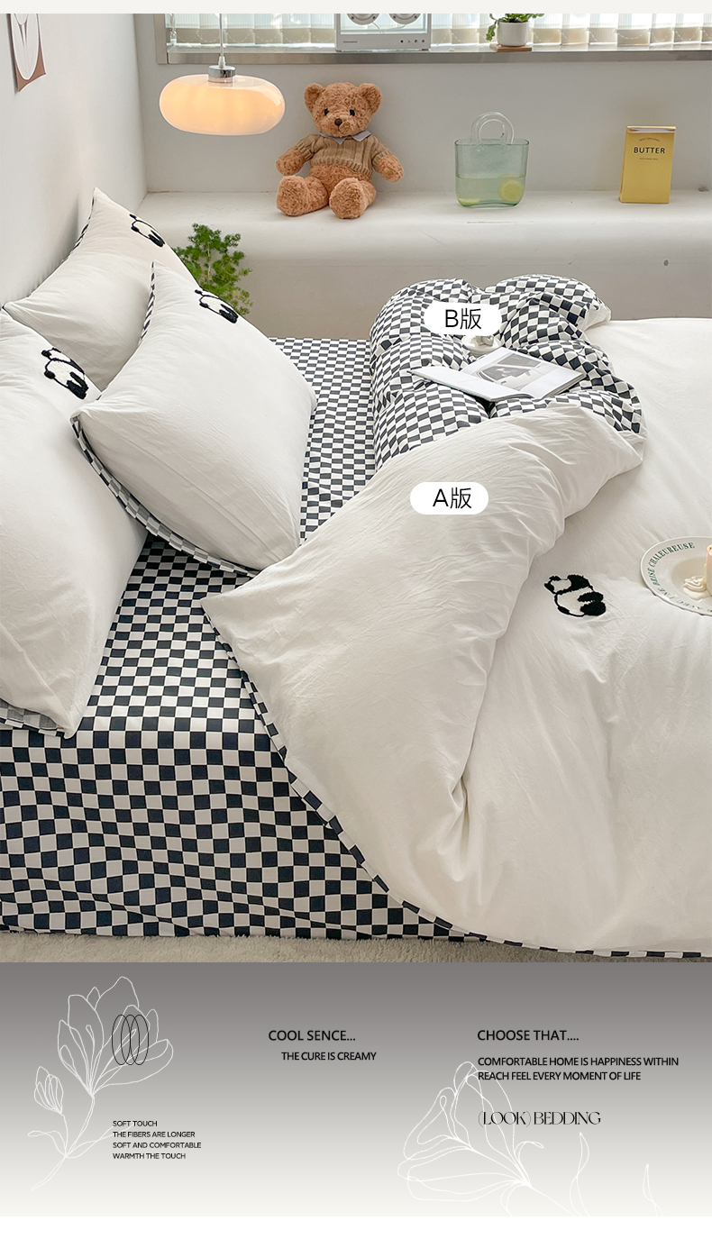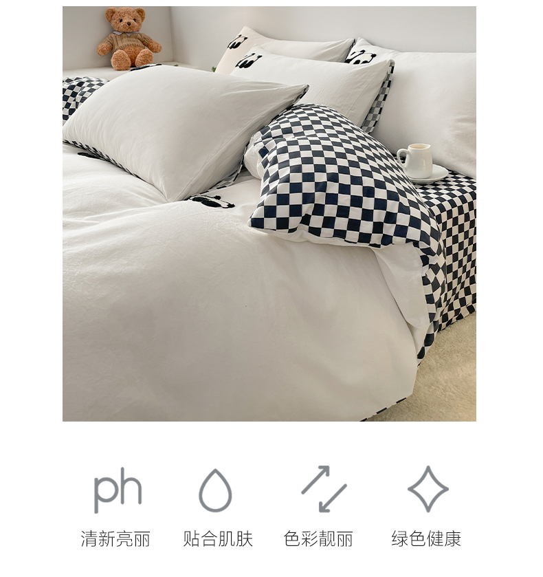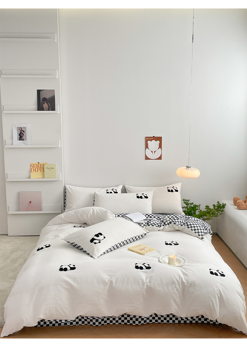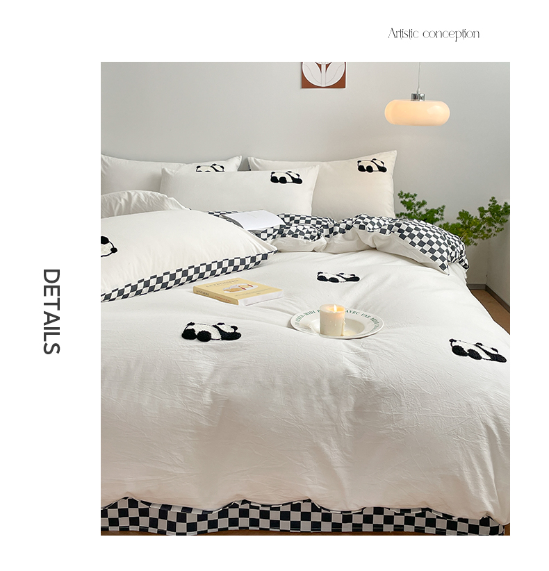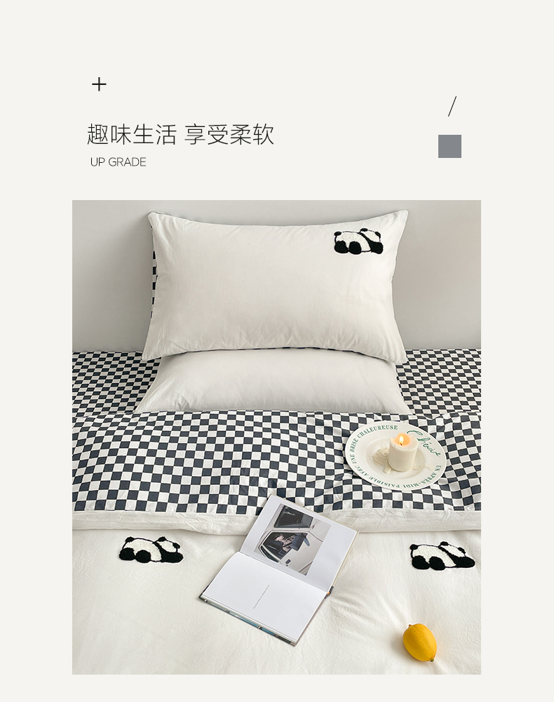 商品名称:雅居纺家纺 2025新款全棉满版毛巾绣四件套 熊猫乐乐