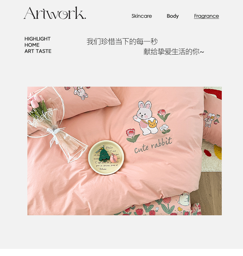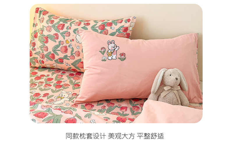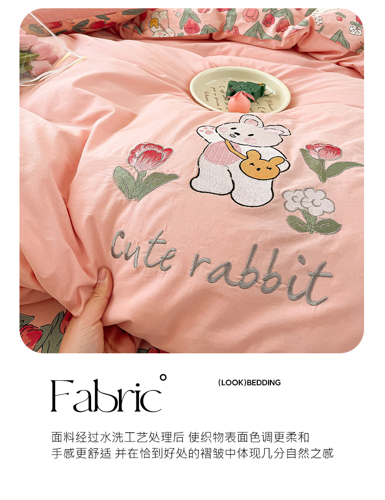 商品名称:雅居纺家纺 2025新款全棉水洗棉绣花四件套 小兔兔