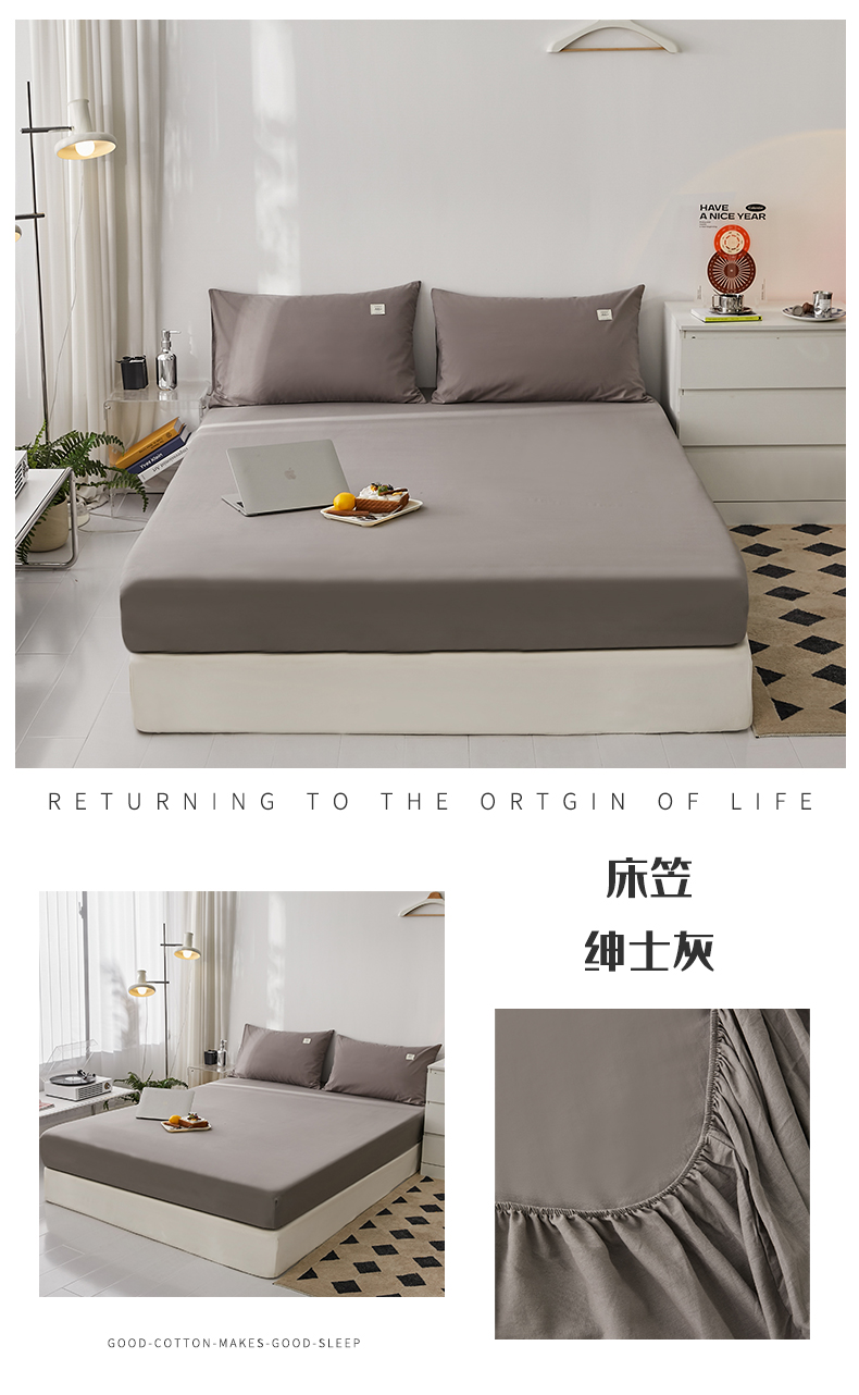 商品名称:雅居纺家纺 2025新款全棉素色水洗棉单床笠 绅士灰