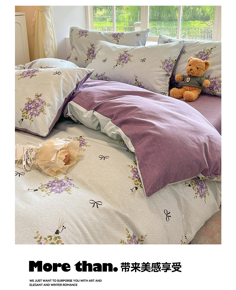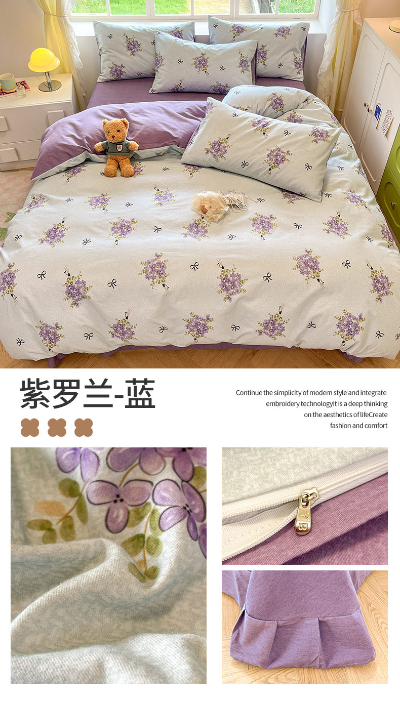 商品名称:2025新款全棉纯棉磨毛印花四件套轻奢时尚 紫罗兰-蓝
