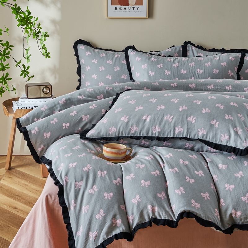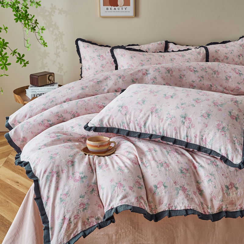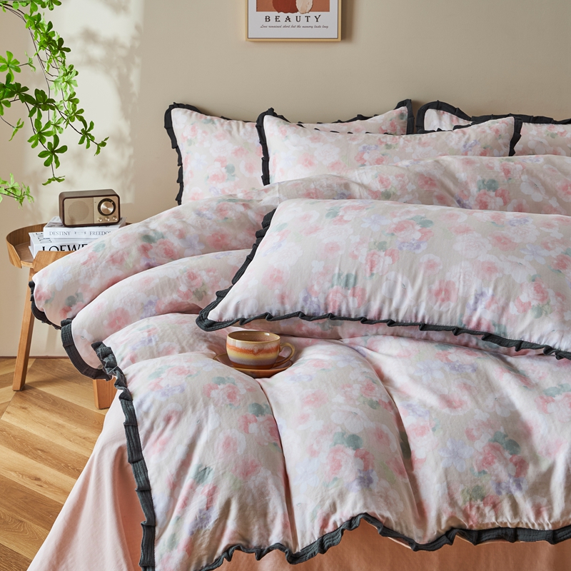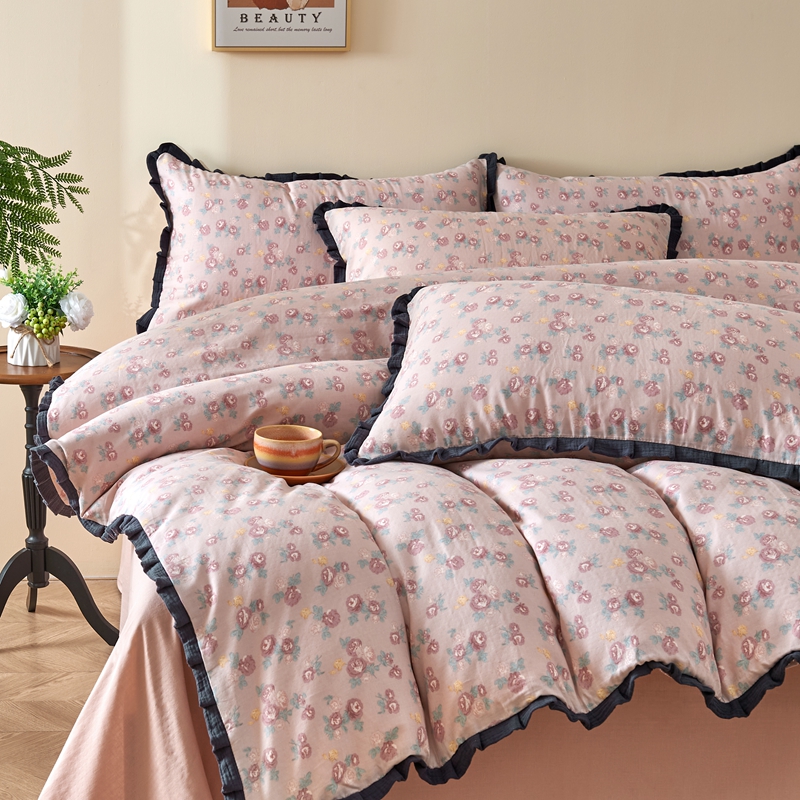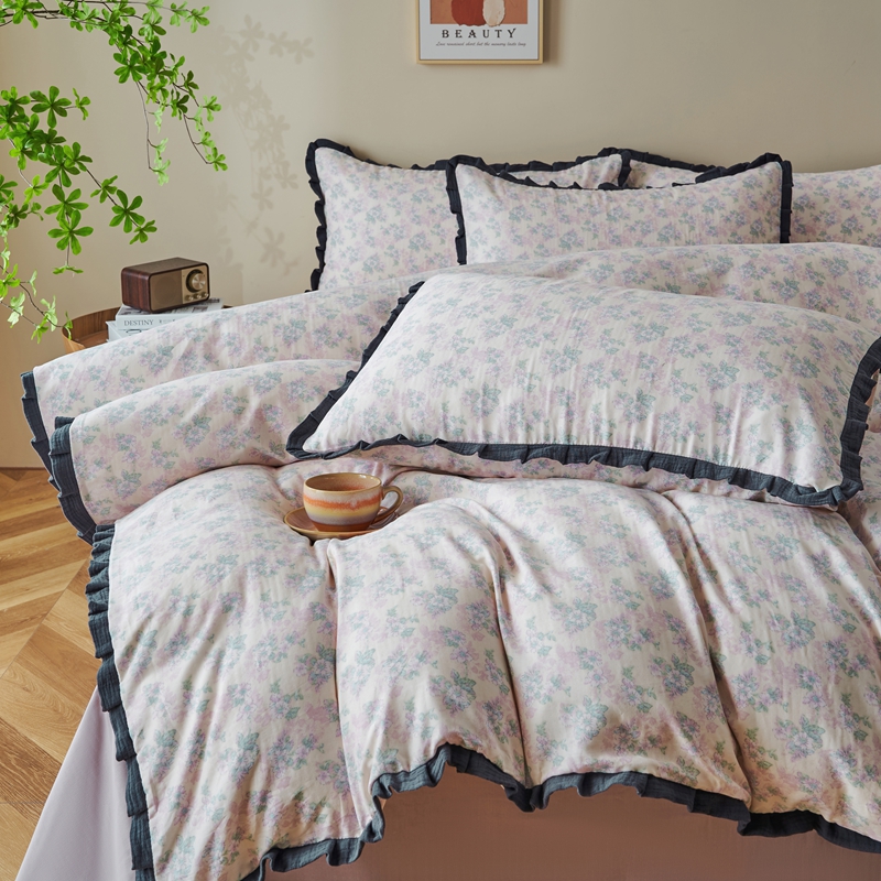 (总)黛馨 2025新款全棉纯棉A类小清新双层纱四件套-皱皱边系列,拜里朵,艾薇,芳华,粉蔷薇,黑蝴蝶,花漾甜心,寄语玫瑰,咖啡糖,可蒂,六丁目,罗曼,米亚,摩卡,奶茶啵啵,青柠,如约,山野玫瑰,糖炒栗子,桃花诺,甜山楂,甜樱桃,小小郁金香,樱桃熊,长情,百福粉,百福咖,罗扇,美式,百福粉-粉边,丽莎时光里,妮卡,晚香玉,樱樱桃,杏绘,芋泥波波,珍珠奶茶,紫萱,美稷