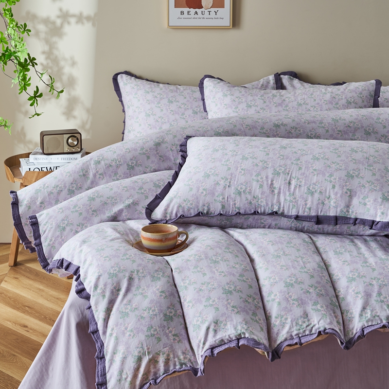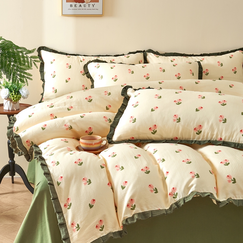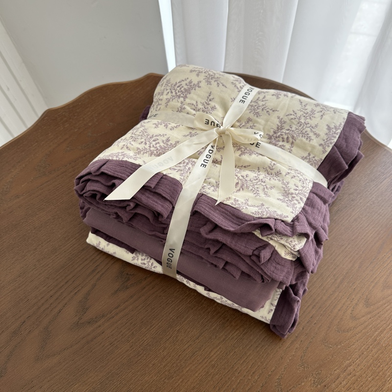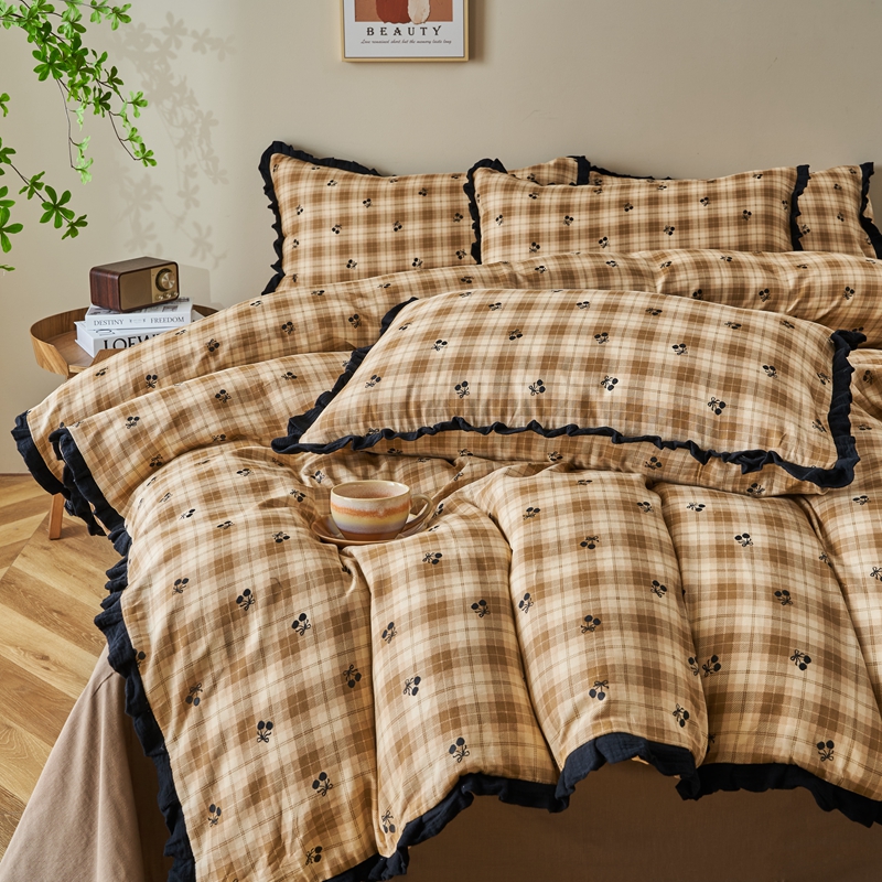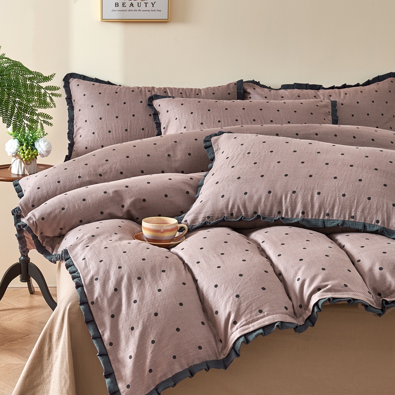 (总)黛馨 2025新款全棉纯棉A类小清新双层纱四件套-皱皱边系列,拜里朵,艾薇,芳华,粉蔷薇,黑蝴蝶,花漾甜心,寄语玫瑰,咖啡糖,可蒂,六丁目,罗曼,米亚,摩卡,奶茶啵啵,青柠,如约,山野玫瑰,糖炒栗子,桃花诺,甜山楂,甜樱桃,小小郁金香,樱桃熊,长情,百福粉,百福咖,罗扇,美式,百福粉-粉边,丽莎时光里,妮卡,晚香玉,樱樱桃,杏绘,芋泥波波,珍珠奶茶,紫萱,美稷