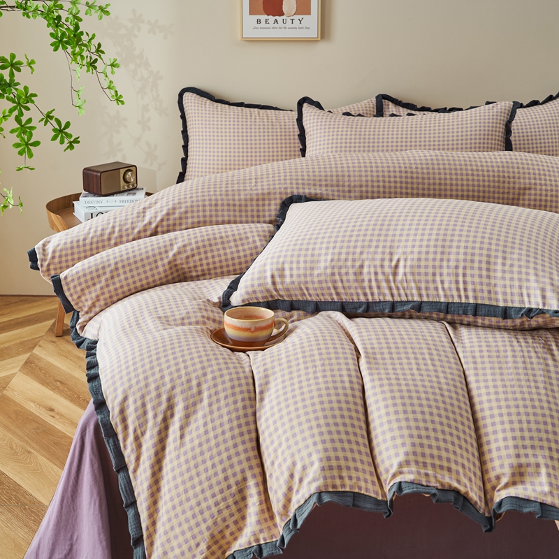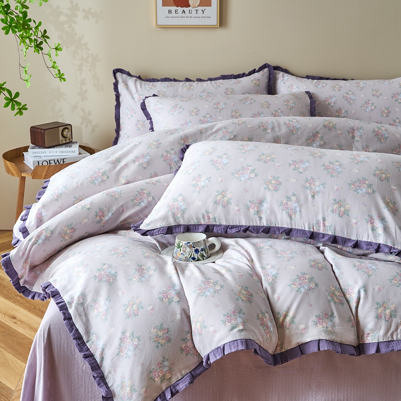 (总)黛馨 2025新款全棉A类小清新双层纱四件套-皱皱边系列