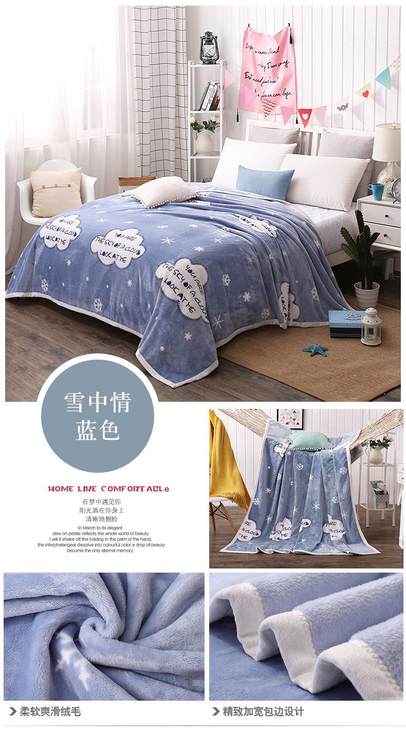商品名称:2025新款云貂绒清仓特价毛毯 雪中情蓝