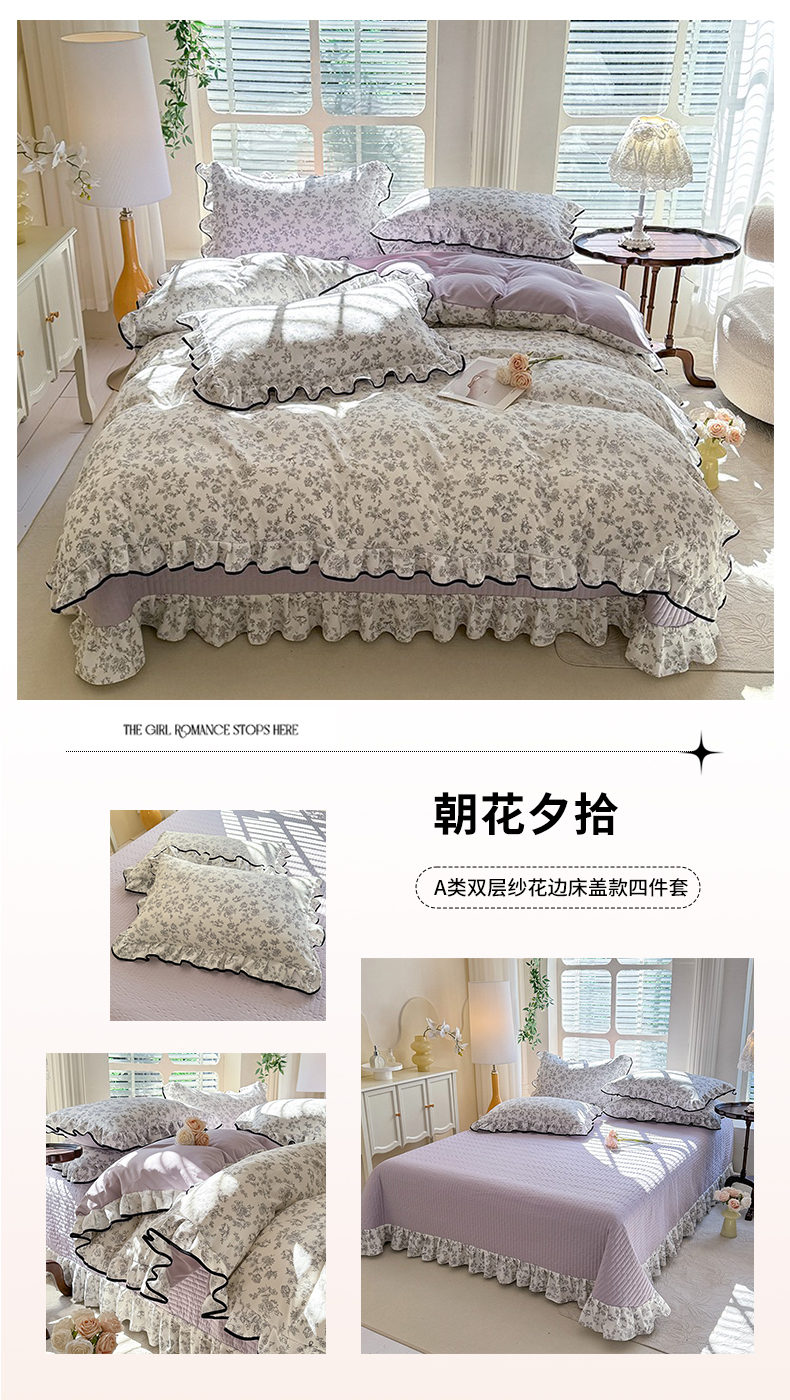 商品名称:韩约家纺 2025新款1针织双层纱花边款床盖四件套 朝花夕拾(花边款)