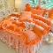 商品名称:2025秋冬新款230g全消光牛奶绒床裙款四件套纯色蕾丝花边刺绣蕾丝床裙款床盖款法式蕾丝公主粉奶油风四件套 甜心—艾玛橙