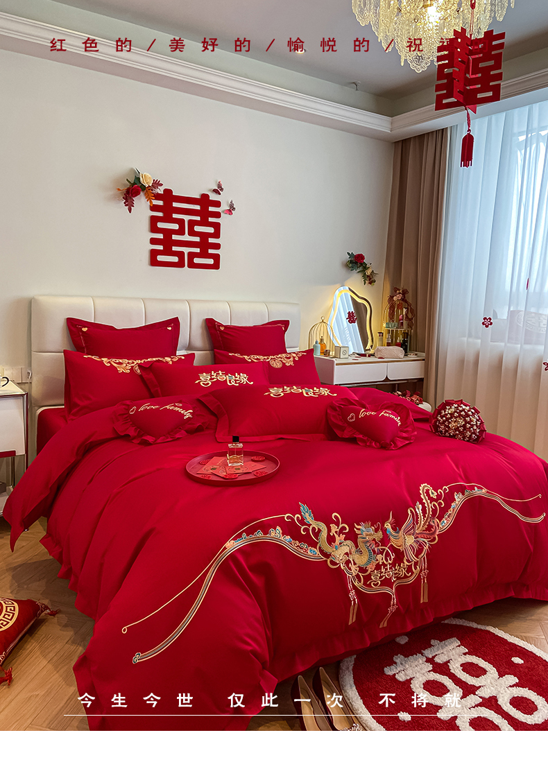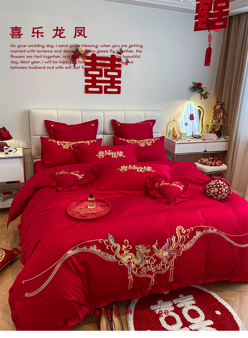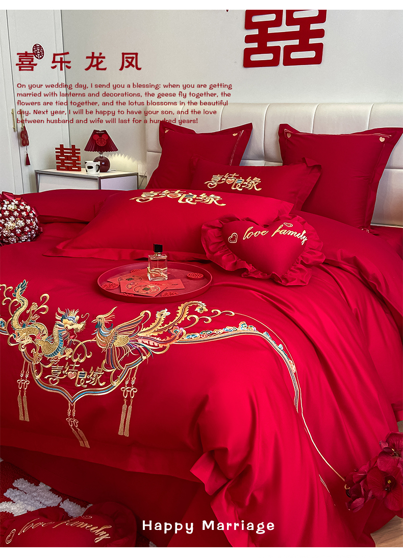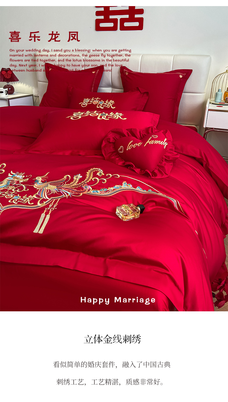 当前位置: 91家纺网 > 商品网购 > 床品套件 > 四件套 > 婚庆四件套 > 东方合美(原:皇家传奇) 2023新款小红书风格热款40S婚庆系列 喜乐龙凤