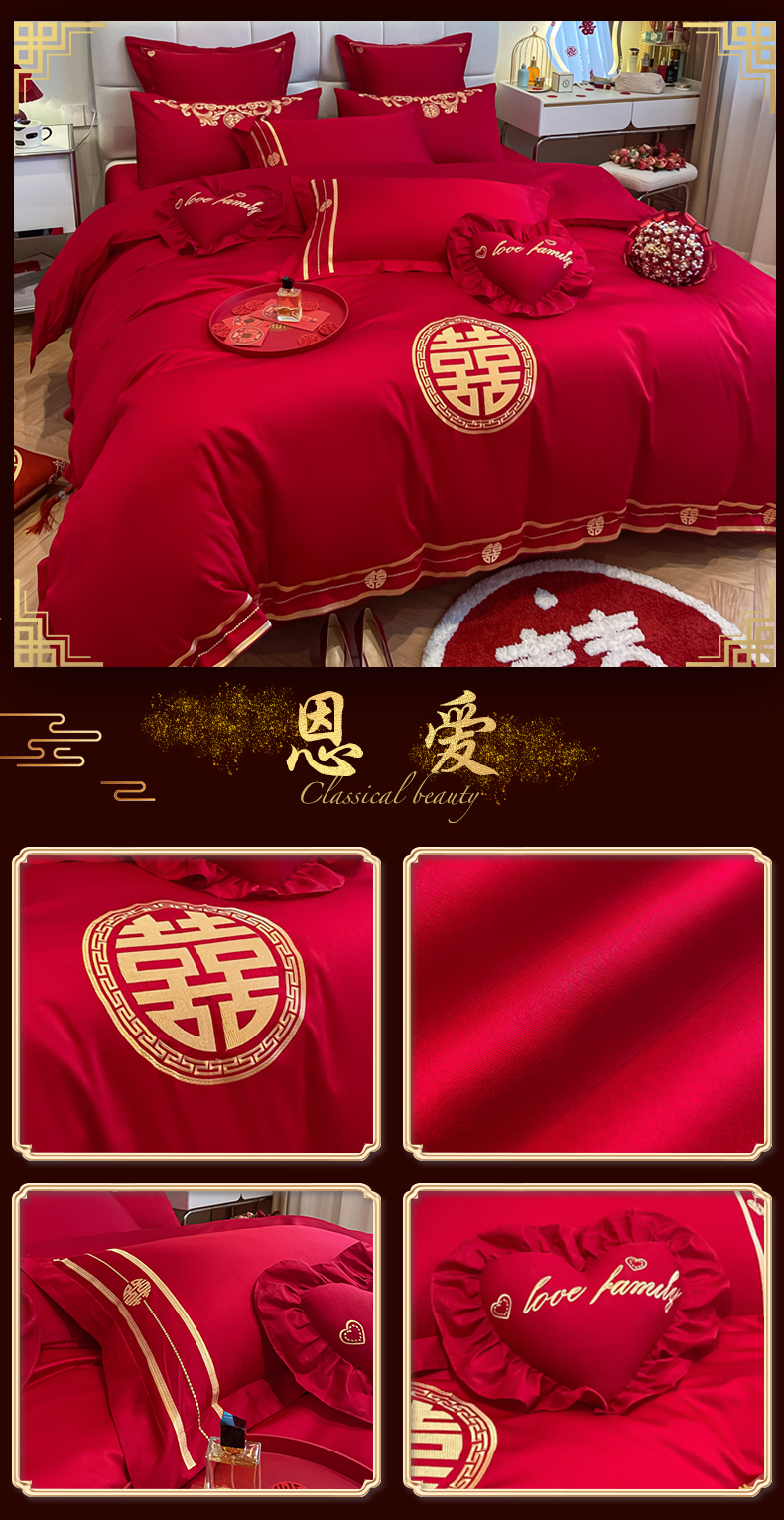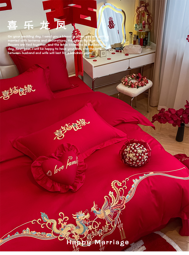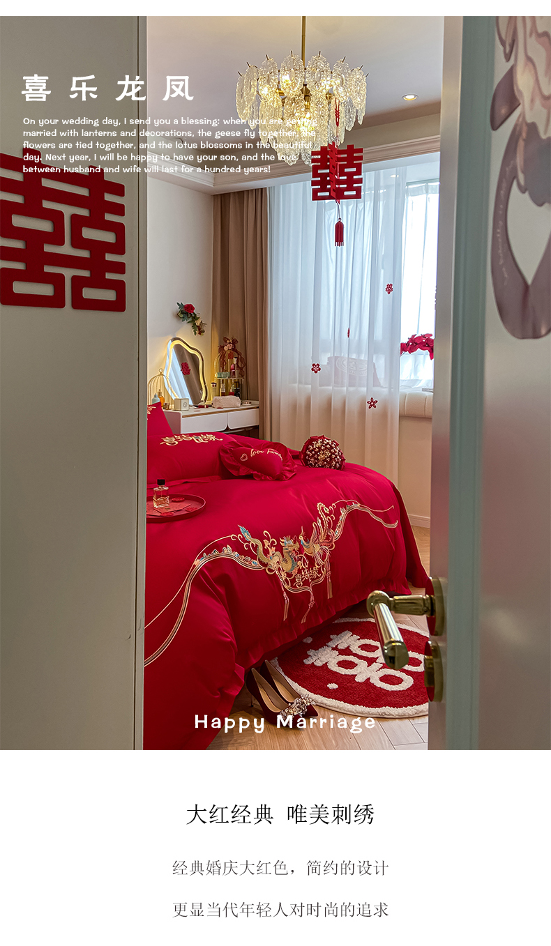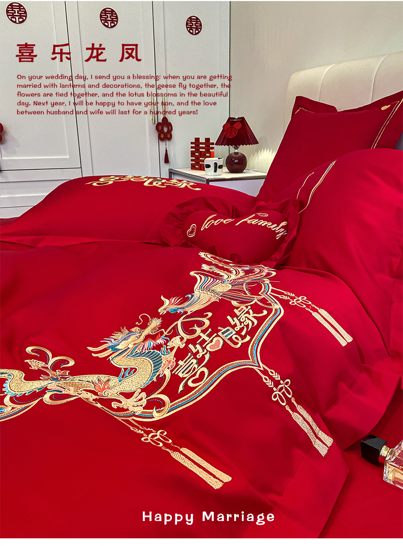 当前位置: 91家纺网 > 商品网购 > 床品套件 > 四件套 > 婚庆四件套 > 东方合美(原:皇家传奇) 2023新款小红书风格热款40S婚庆系列 喜乐龙凤