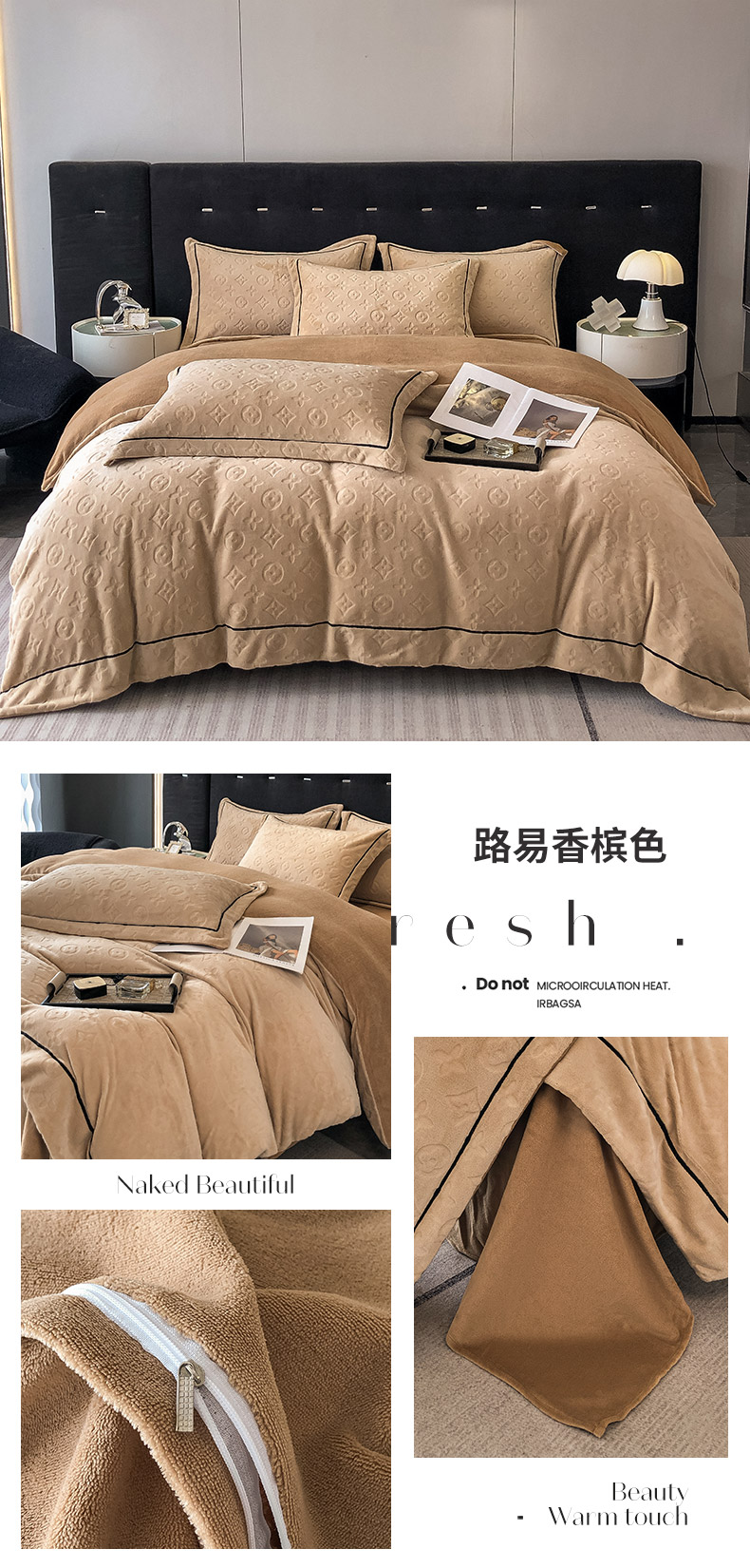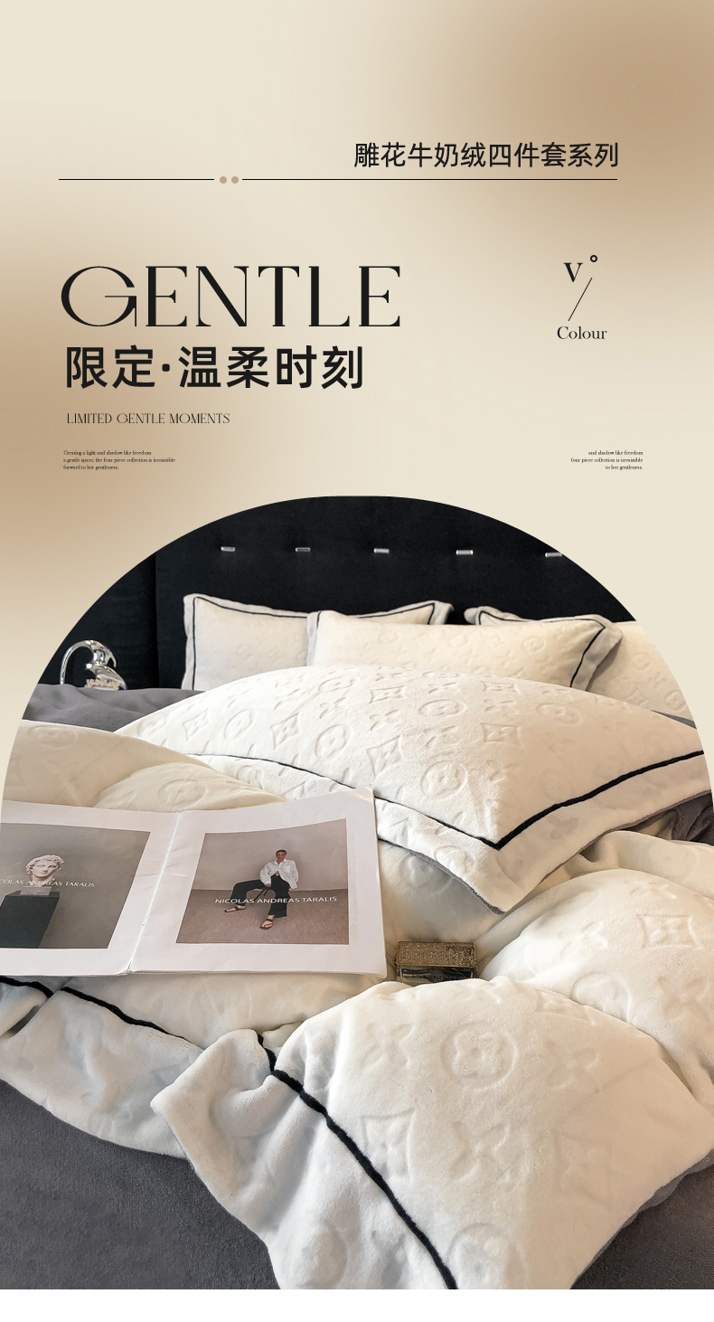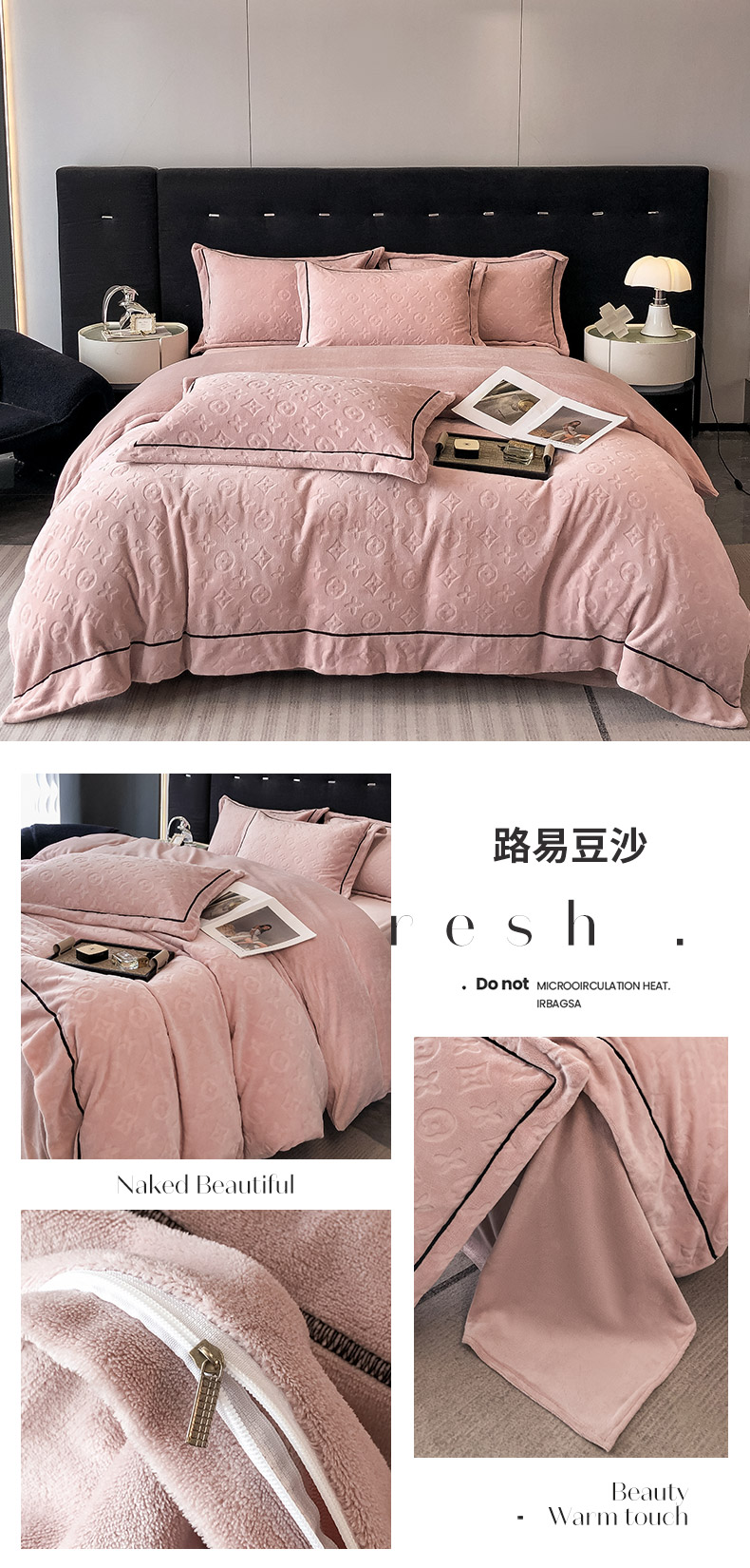 (总)(买家秀爆款不断货)A类母婴级牛奶雕花绒四件套珊瑚绒四件套雪花绒四件套韩版公主风雕花牛奶绒床盖四件套