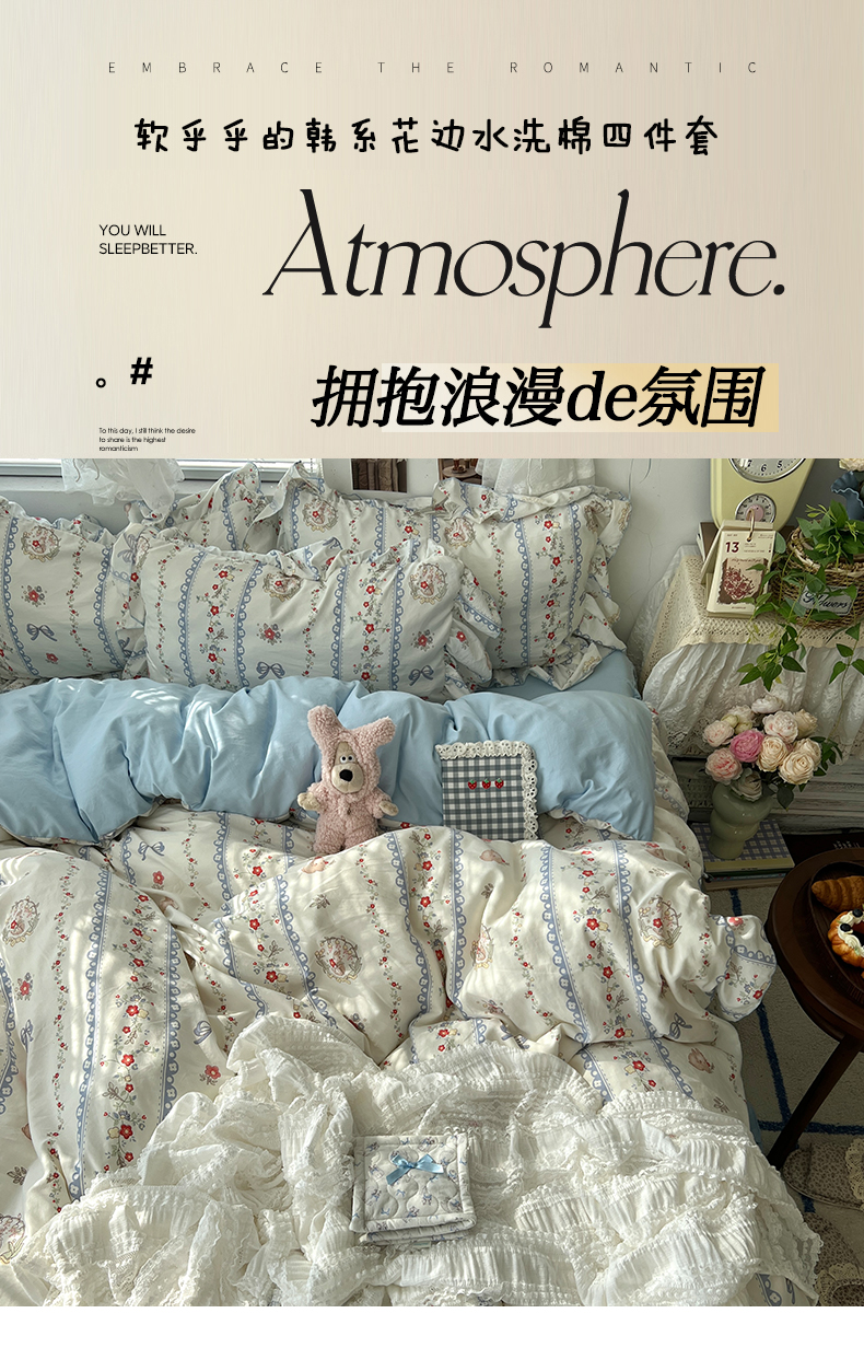 当前位置: 91家纺网 > 商品网购 > 床品套件 > 四件套 > 水洗棉四件套 > 原素 2025新款韩系小花卉花边水洗棉四件套 花于