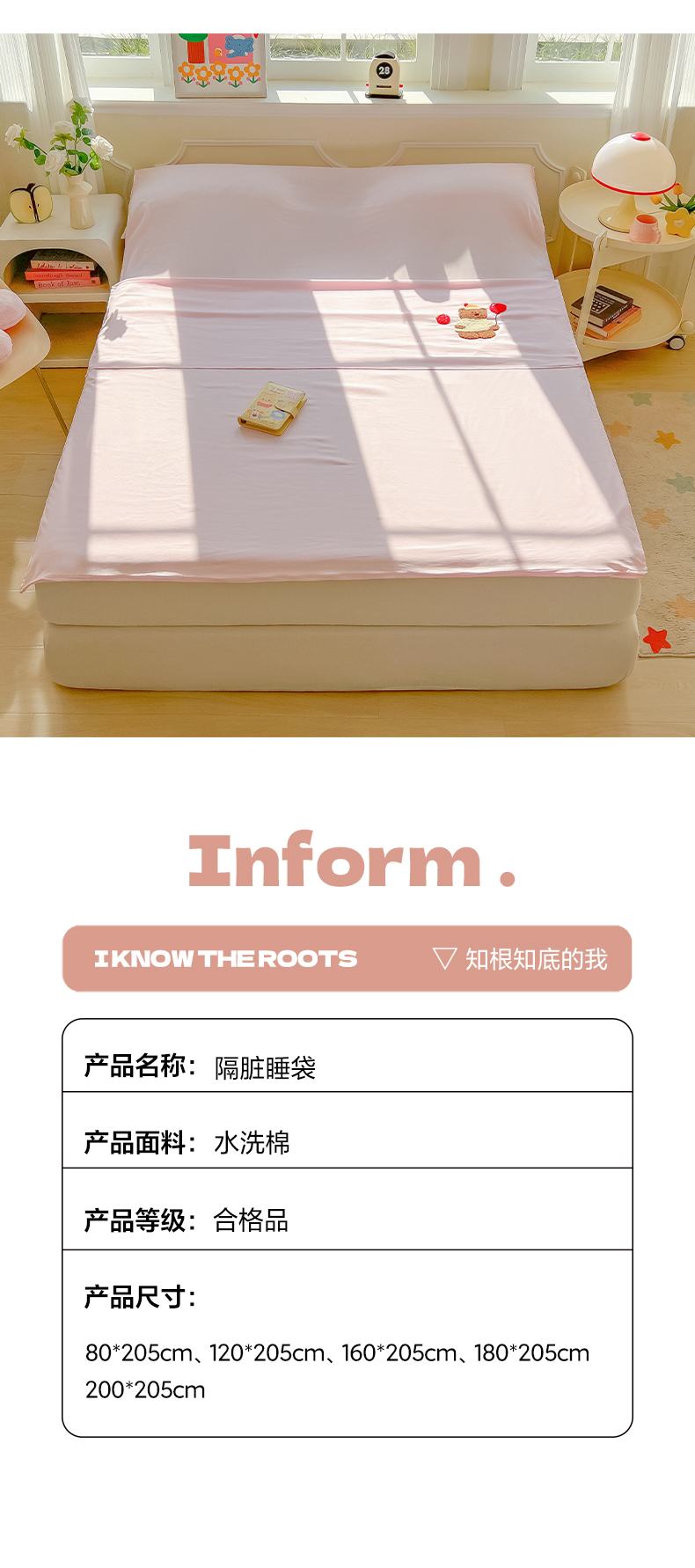 (总)柒星睡袋 2023新款A类棉小竺差旅神器火车卧铺酒店旅行隔脏睡袋,粉,灰,蓝,绿,紫