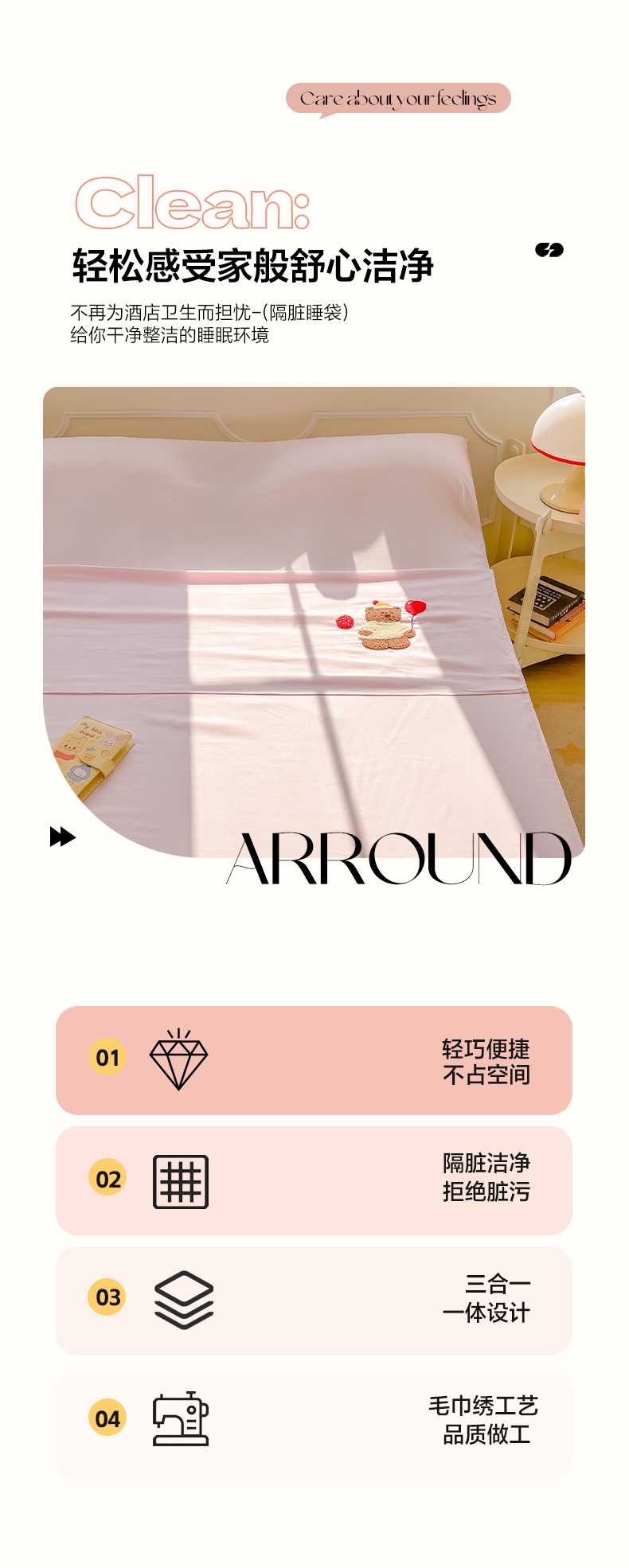 (总)柒星睡袋 2025新款a类水洗毛巾绣一次性隔脏睡袋,巴萨熊蓝,巴萨熊浅粉,巴萨熊紫,布布米白,布布浅粉,布布紫,腊肠狗米白,腊肠狗浅灰,腊肠狗驼色,小新豆绿,小新蓝,小新浅灰