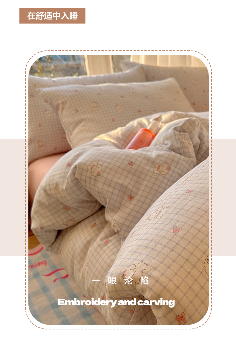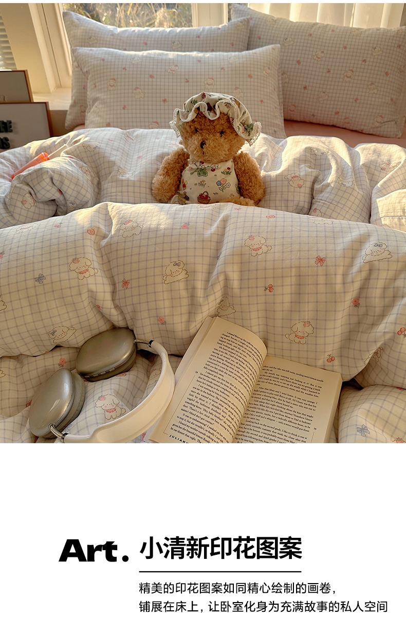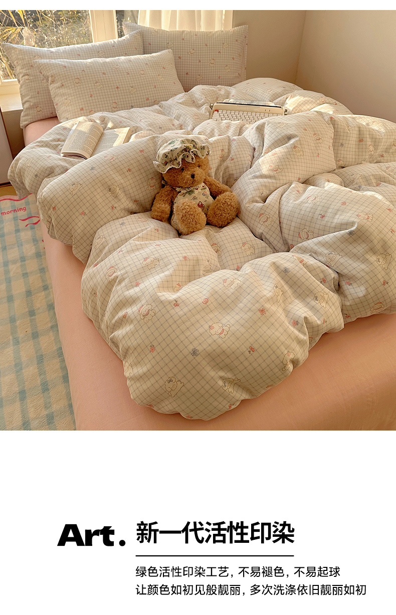 (总)雅居纺家纺 2026新款全棉小清新印花四件套,HI小狗,暴富,草莓蓝花,粉色熊熊,红红火火,简笔画小兔,蓝条花朵兔,绿色小兔,森林乐园,绅士快乐狗,贪睡猫猫,贪玩家族,贪玩小兔兔,祥瑞,小黑猫咪,幸福花朵,幸福兔-蓝,熊熊小汽车,紫色千鸟格