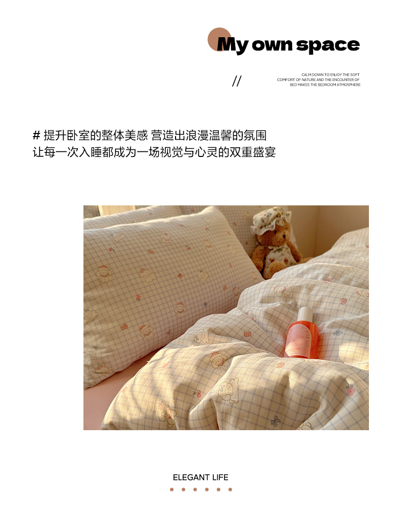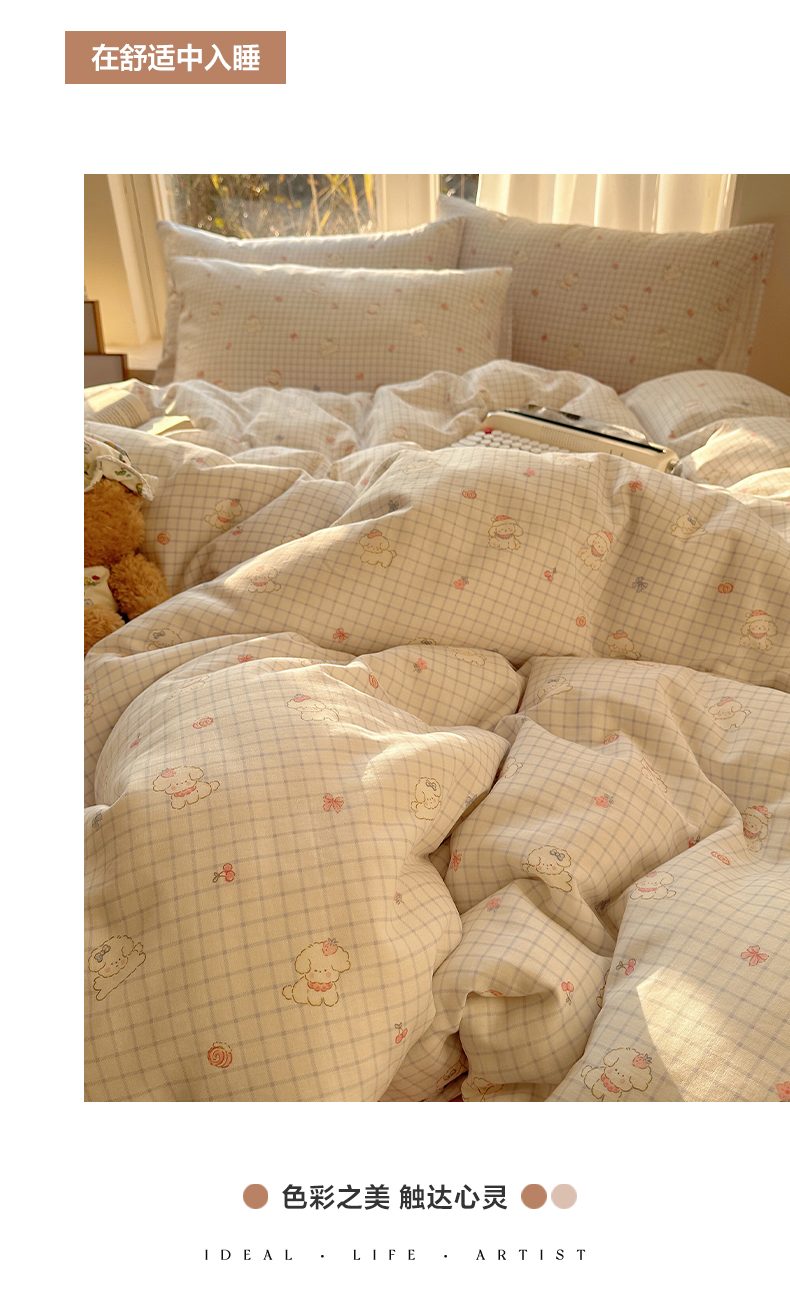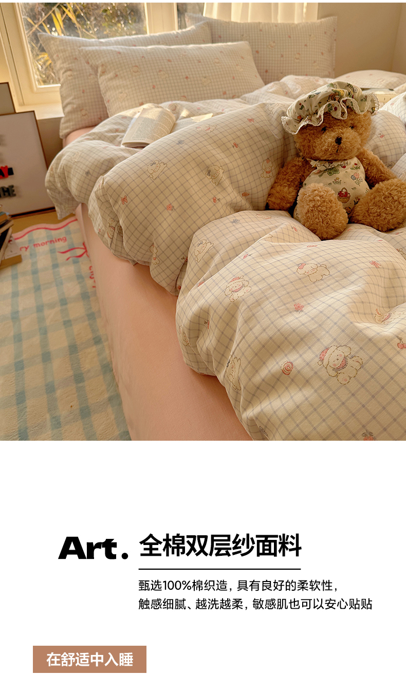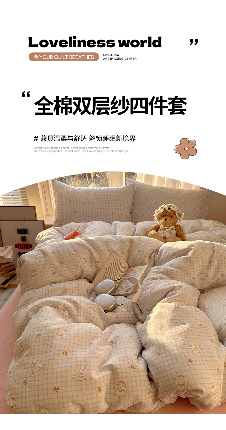 雅居纺家纺 2025新款全棉双层纱四件套 格子狗