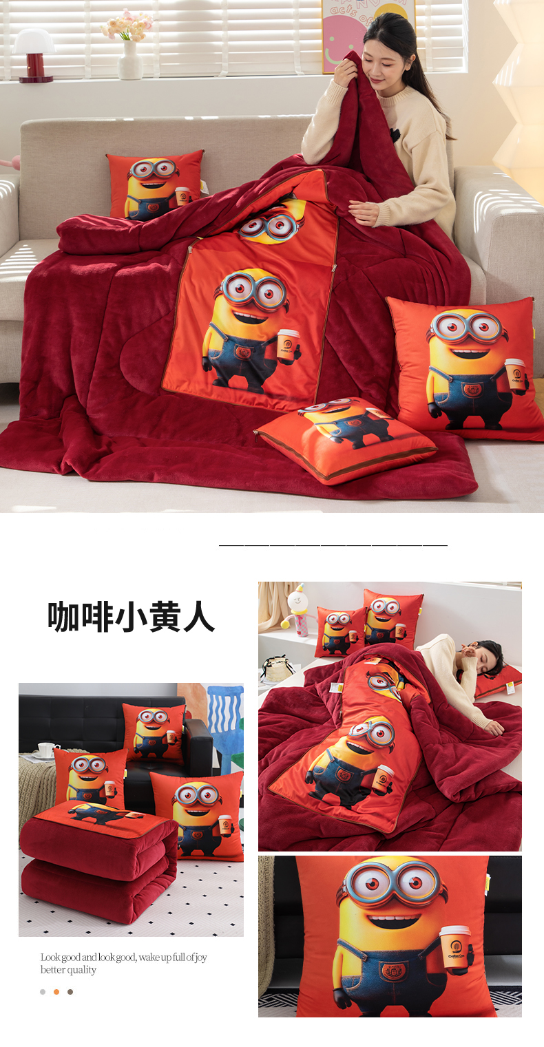 商品名称:宝马家纺(原梦童画) 2025新款小黄人牛奶绒数码印花抱枕被 咖啡小黄人