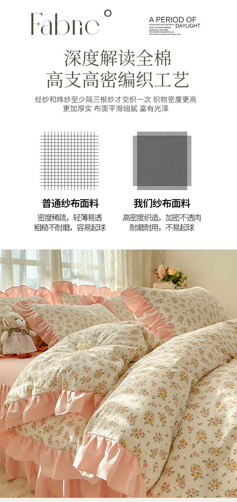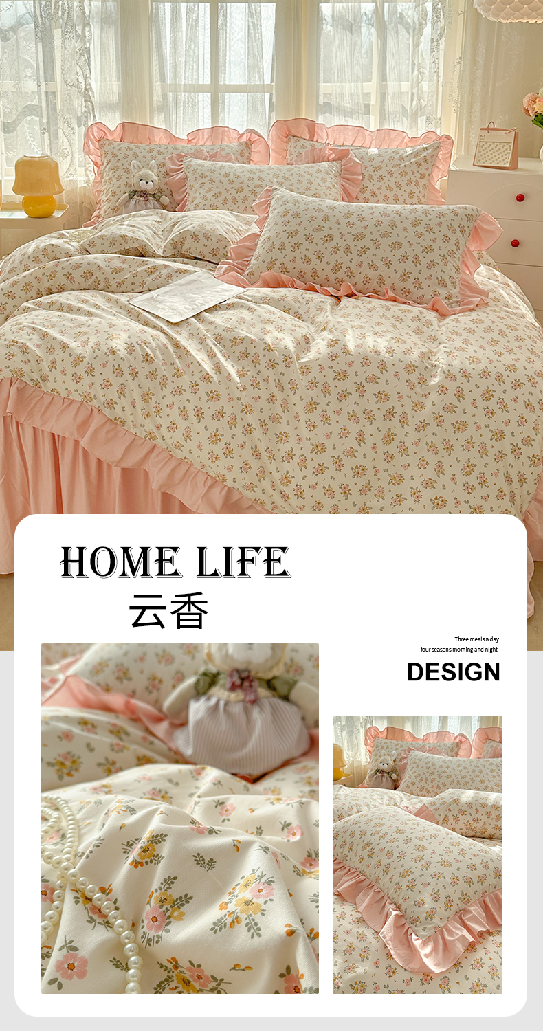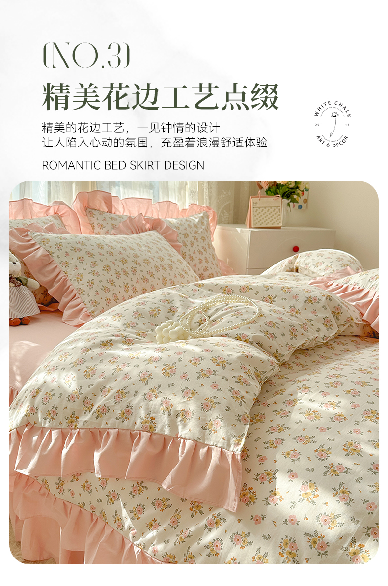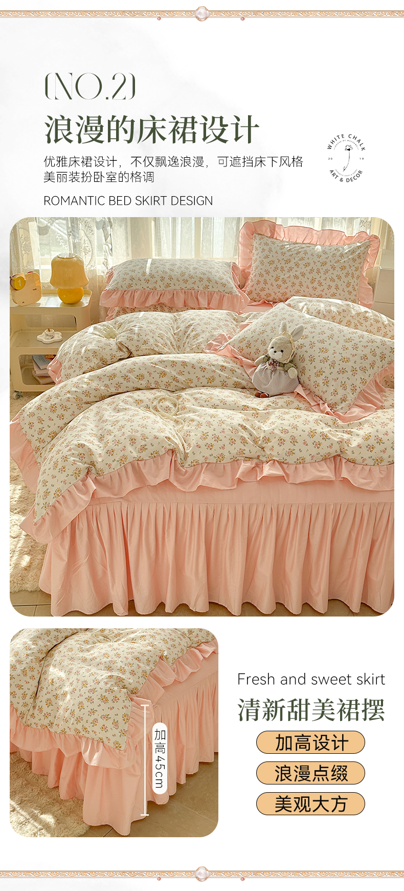 当前位置: 91家纺网 > 商品网购 > 床品套件 > 四件套 > 全棉普通四件套 > 忘忧草 2025新款全棉小清新床裙四件套 云香