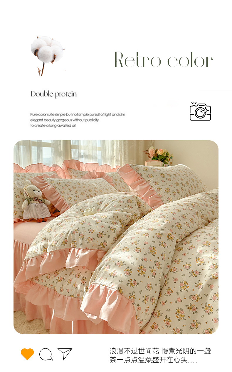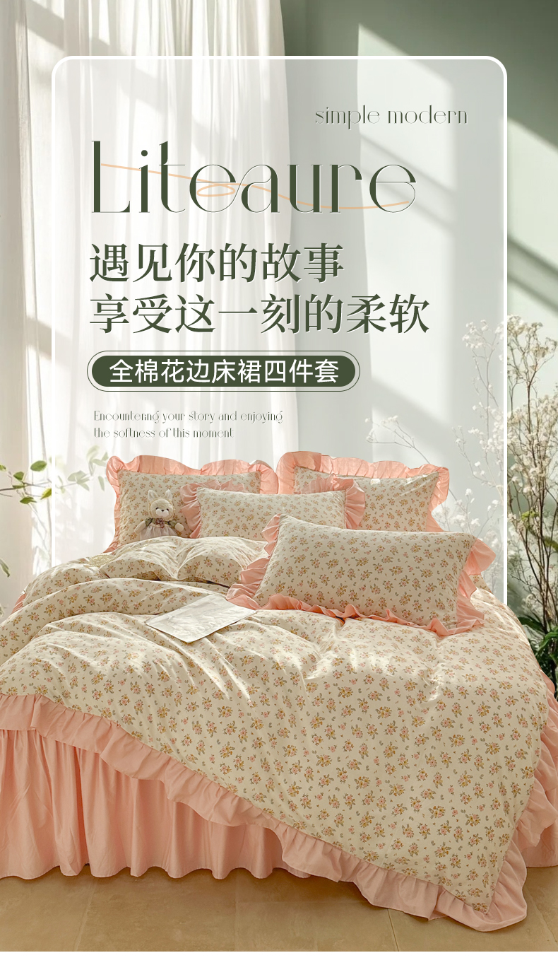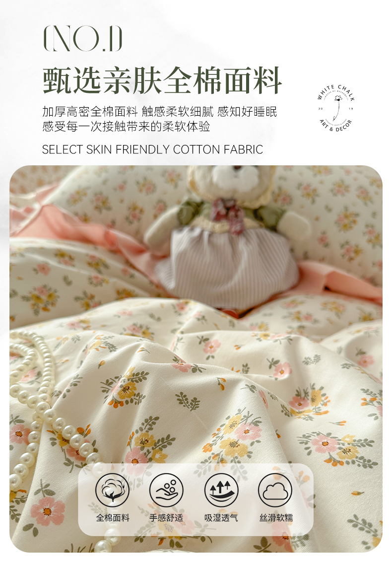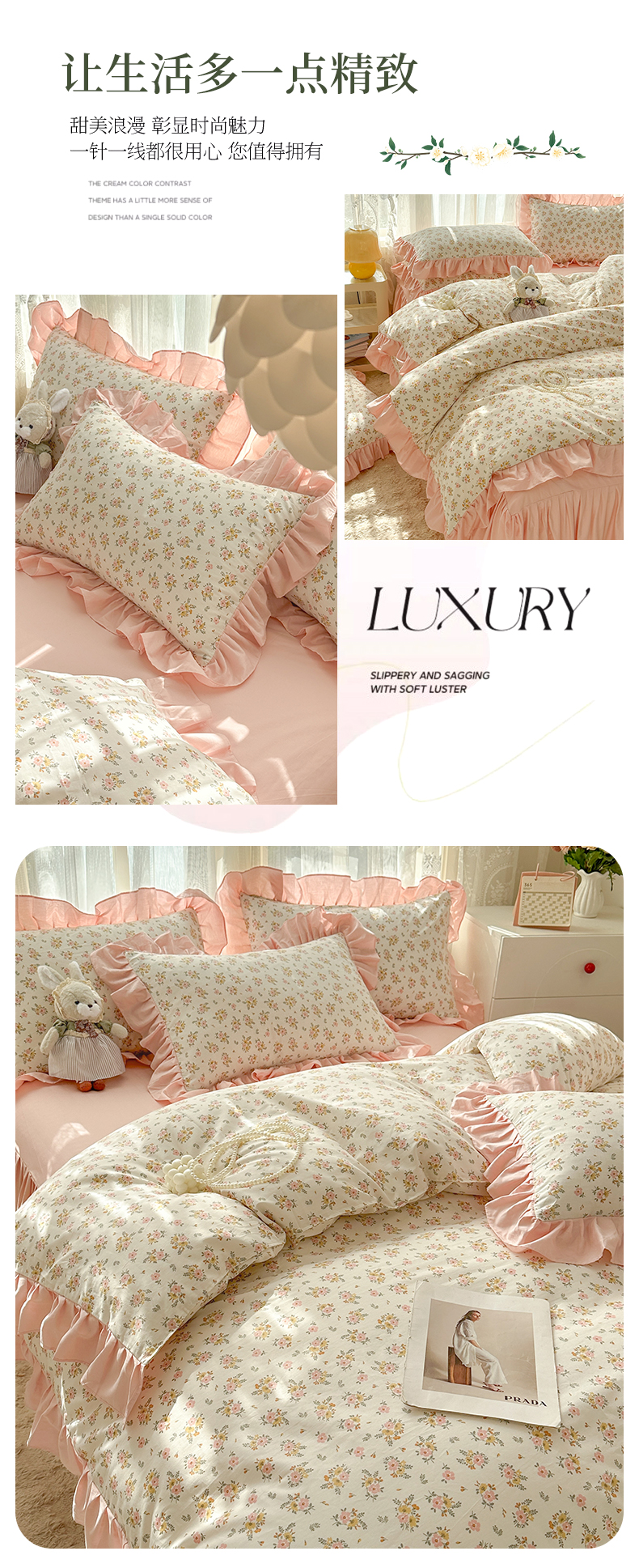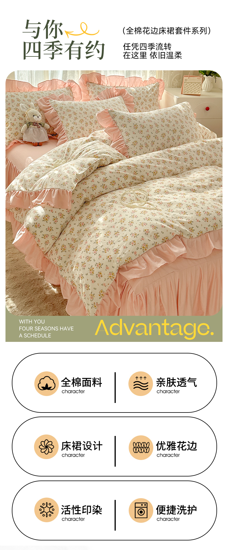 当前位置: 91家纺网 > 商品网购 > 床品套件 > 四件套 > 全棉普通四件套 > 忘忧草 2025新款全棉小清新床裙四件套 云香