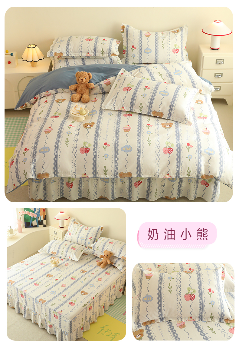 当前位置: 91家纺网 > 商品网购 > 床品套件 > 四件套 > 全棉普通四件套 > 八十八家纺 2025新款全棉12868床裙款四件套奶油小熊
