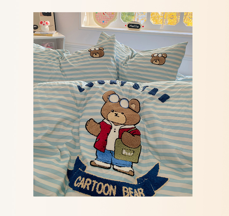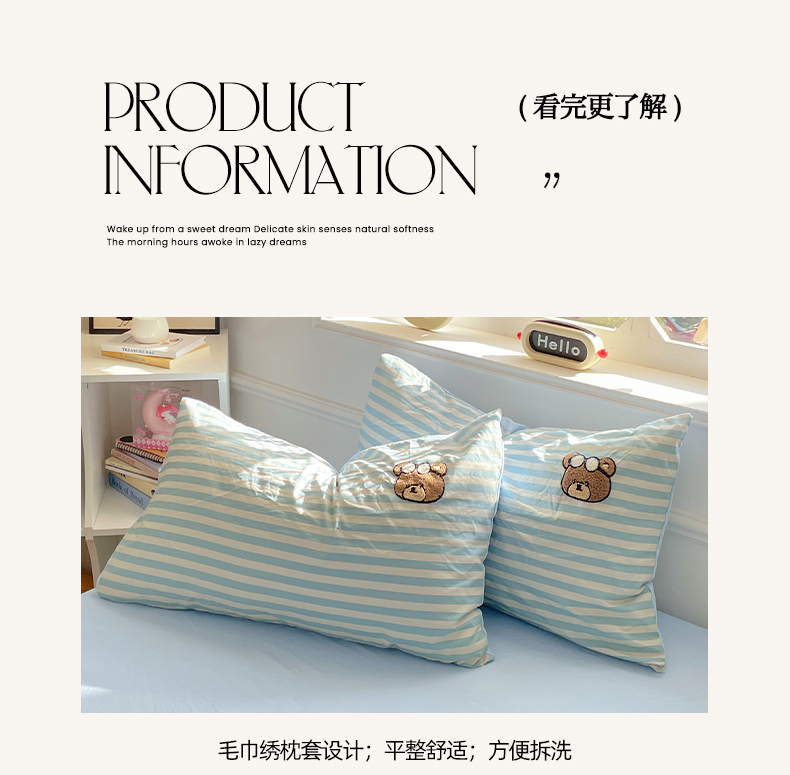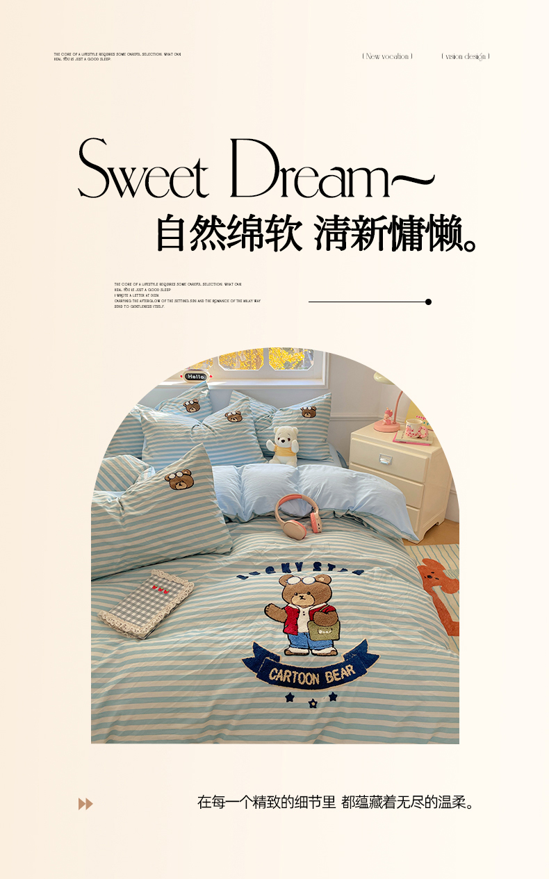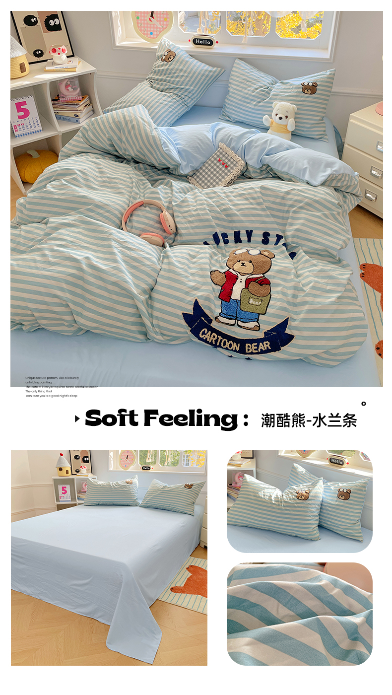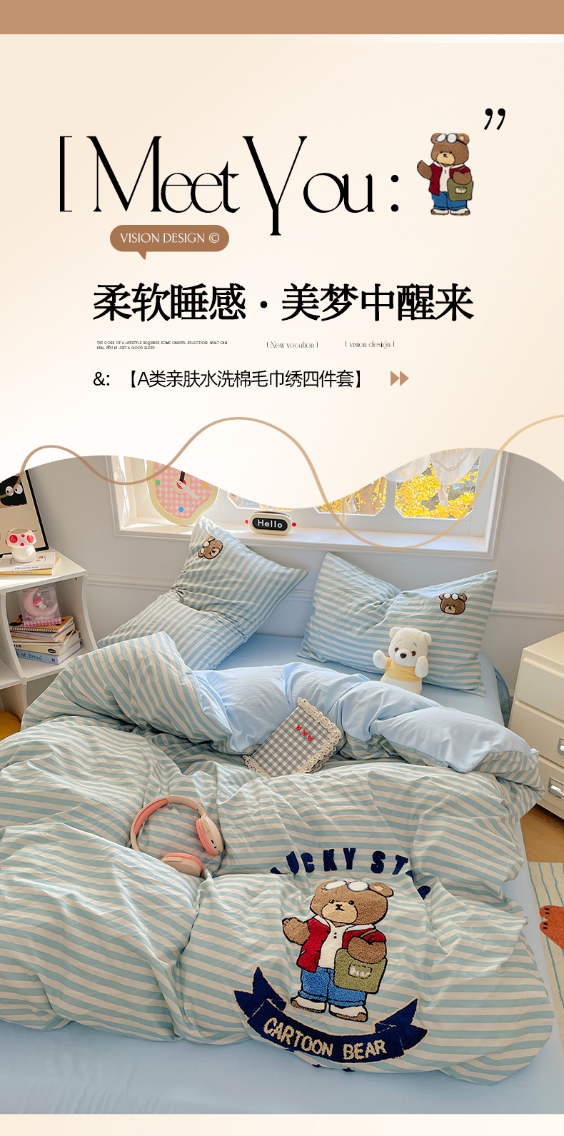 当前位置: 91家纺网 > 商品网购 > 床品套件 > 四件套 > 水洗棉四件套 > 优卡迪家纺馆 2025新款110克水洗棉无印风毛巾绣四件套【下载文件夹包含买家秀】 潮酷熊-水兰条