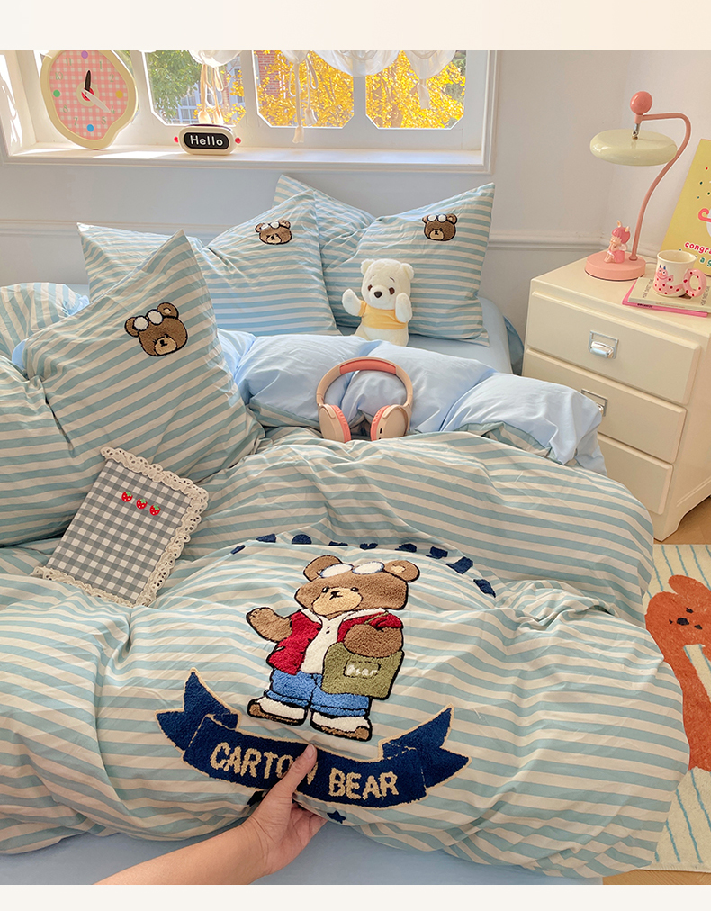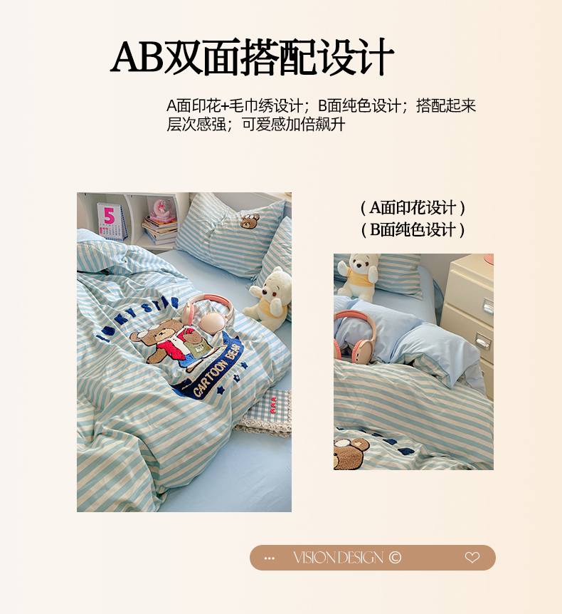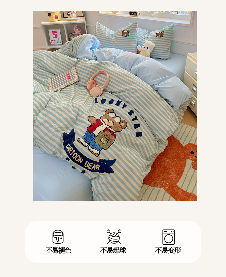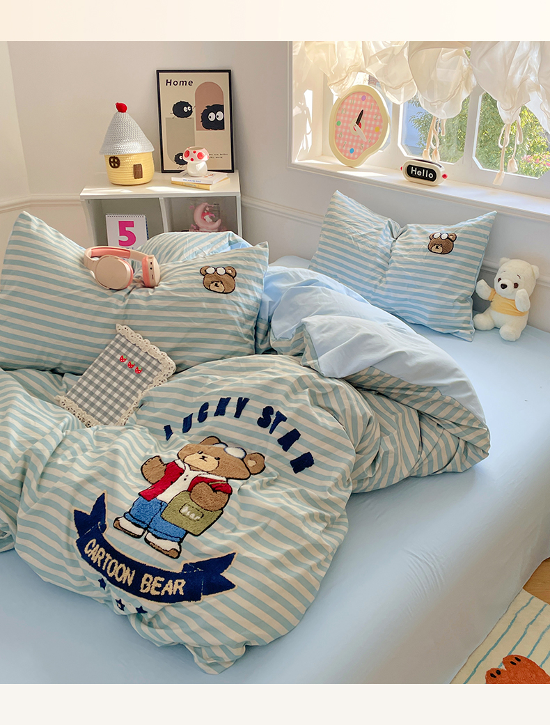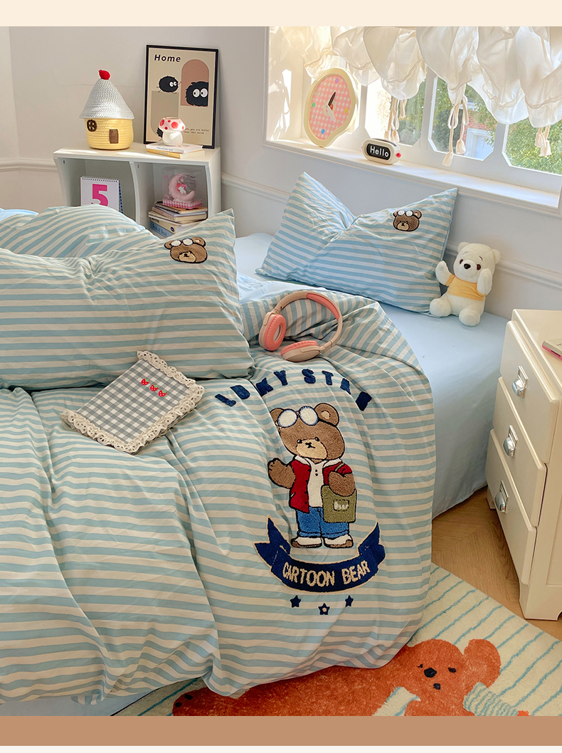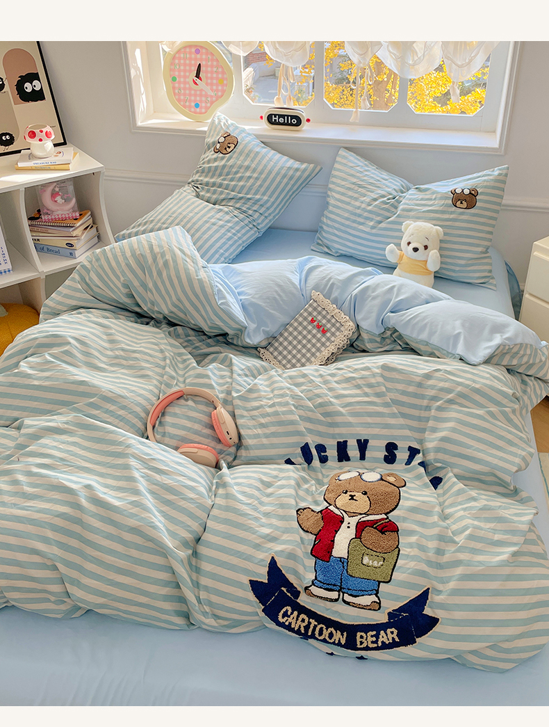 当前位置: 91家纺网 > 商品网购 > 床品套件 > 四件套 > 水洗棉四件套 > 优卡迪家纺馆 2025新款110克水洗棉无印风毛巾绣四件套【下载文件夹包含买家秀】 潮酷熊-水兰条