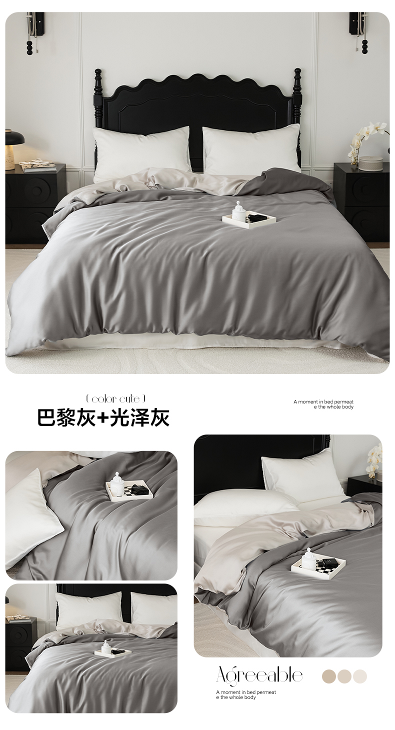 商品名称:EH家居 2025春夏天丝纯色单被套 巴黎灰+光泽灰