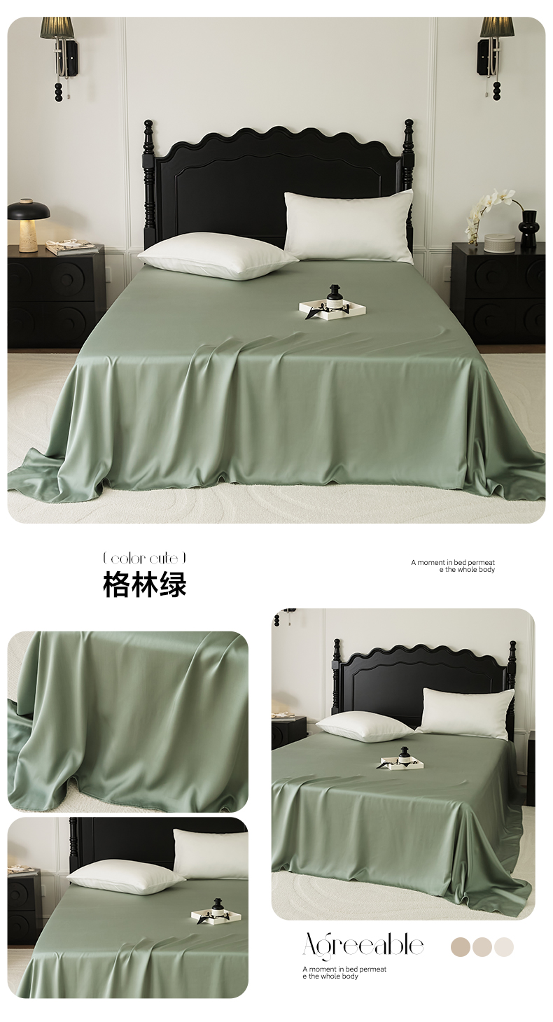 • 91家纺网 家纺一手货源 找家纺 EH家居 2025春夏天丝纯色单床单 格林绿