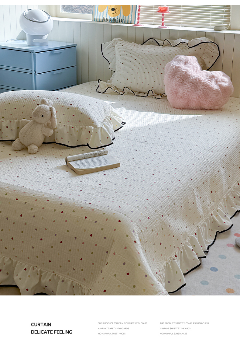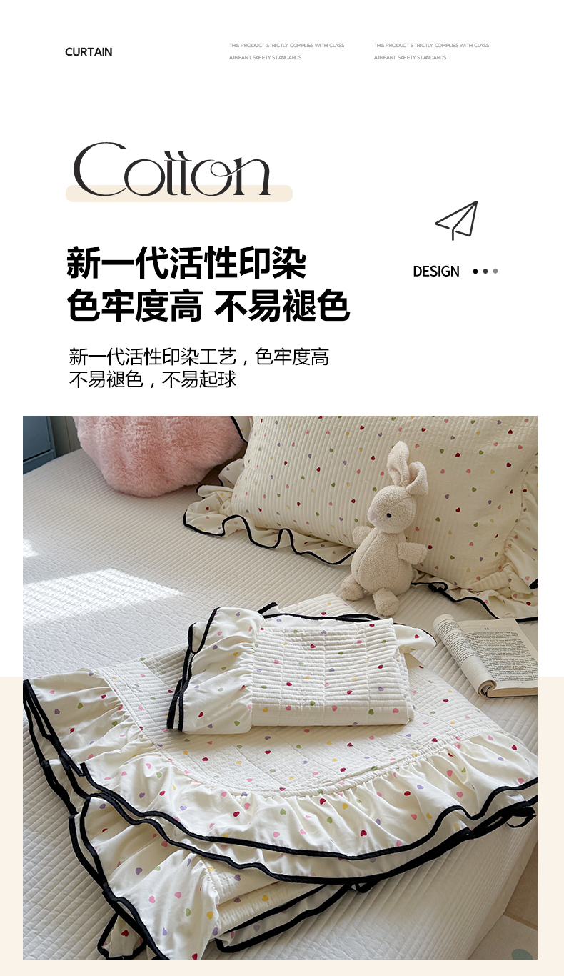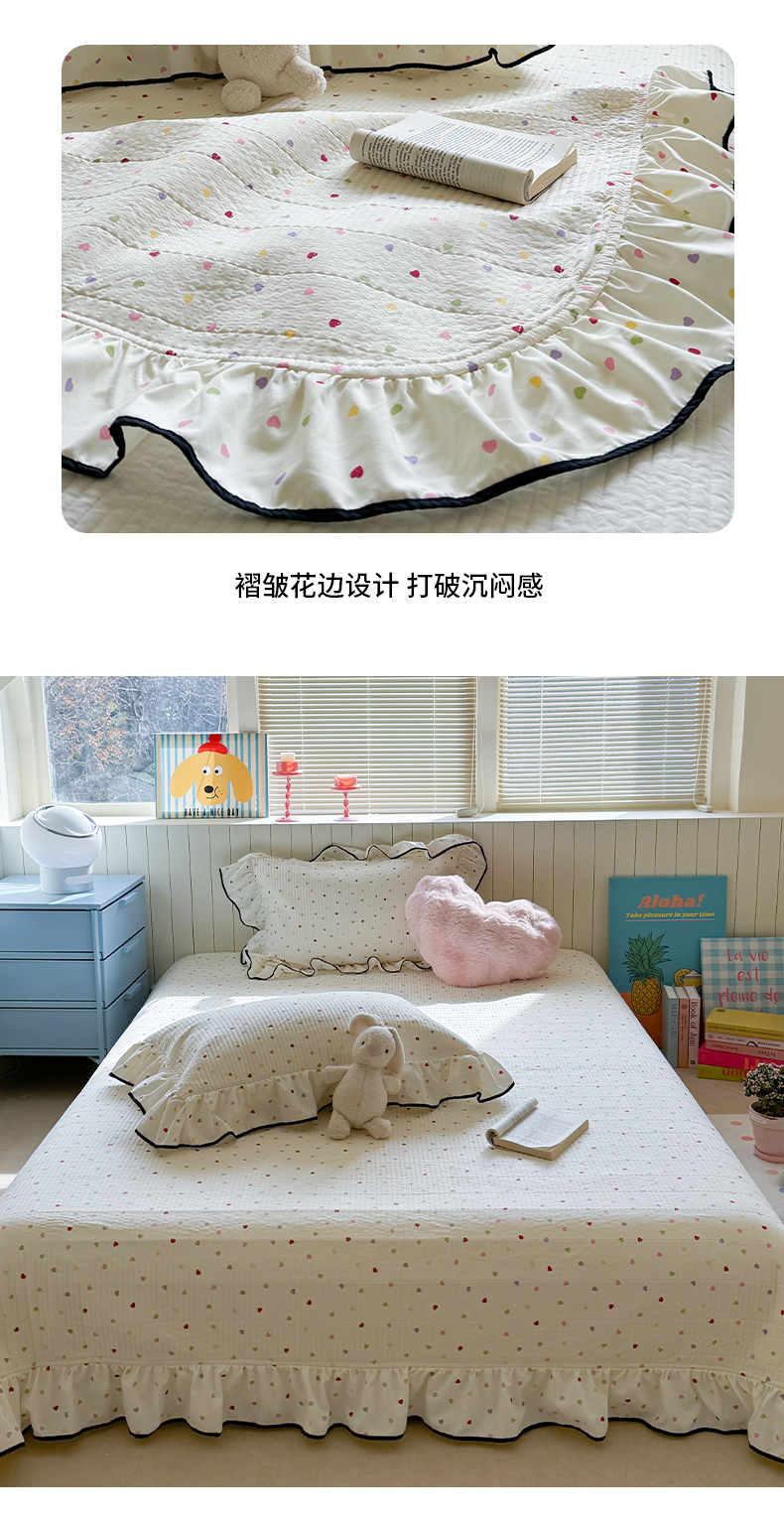 繁花家居 2025新款韩式大花边夹棉床盖系列 五彩爱心