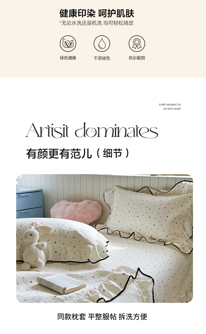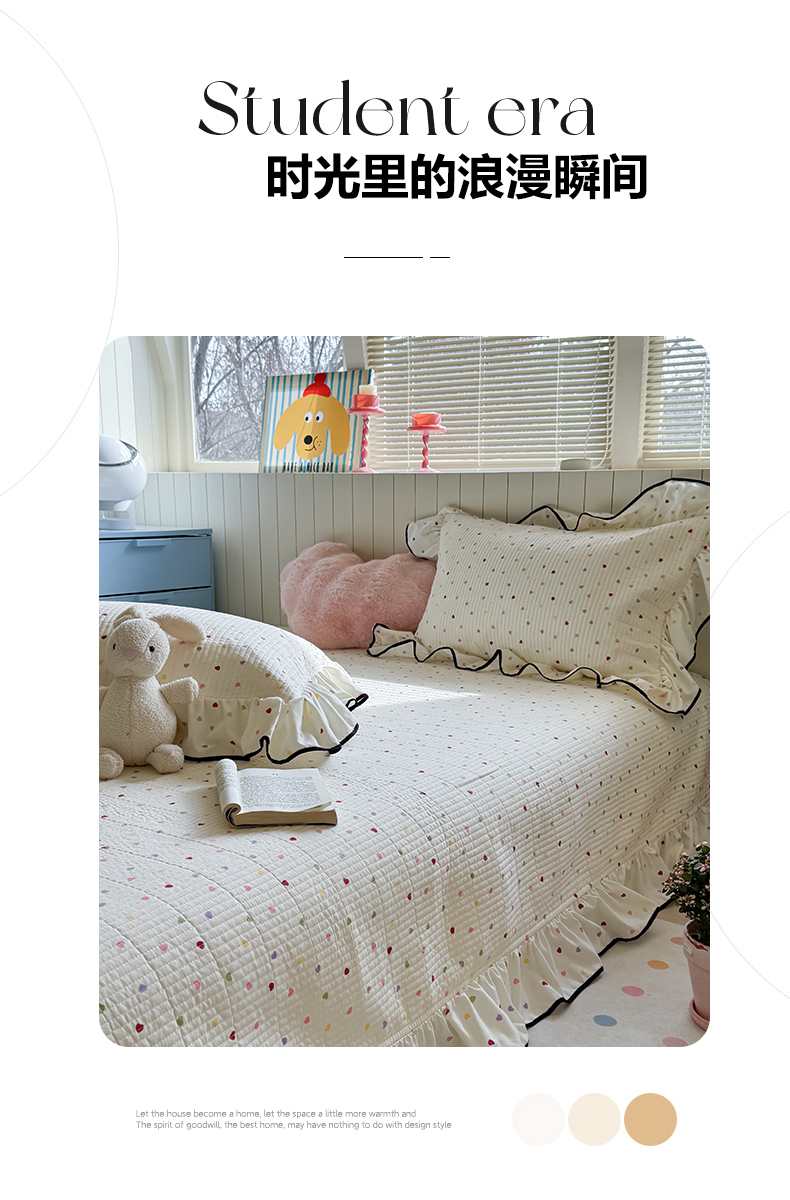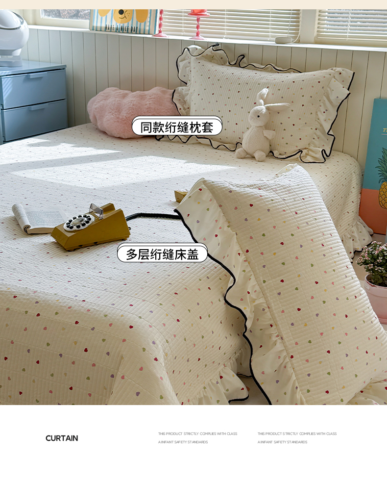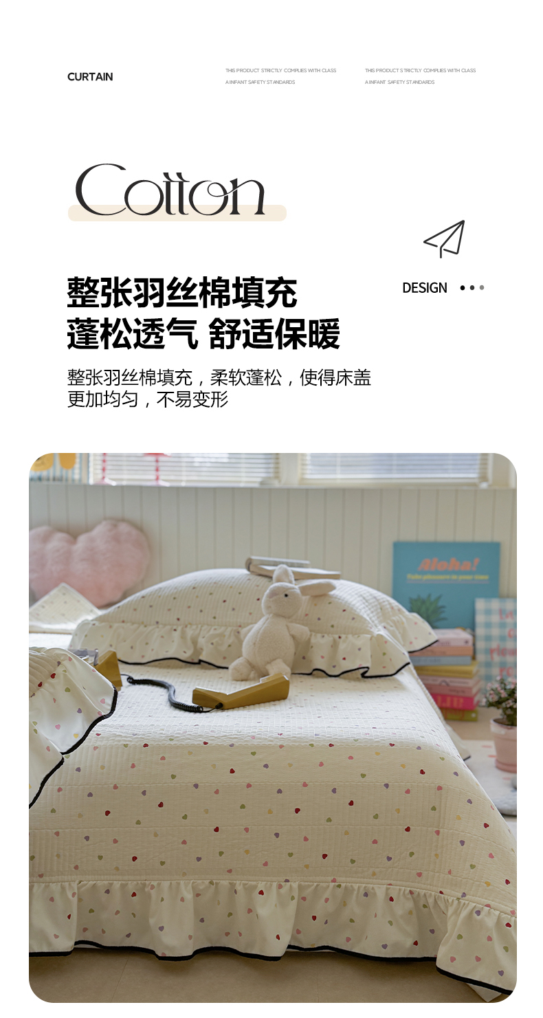 繁花家居 2025新款韩式大花边夹棉床盖系列 五彩爱心