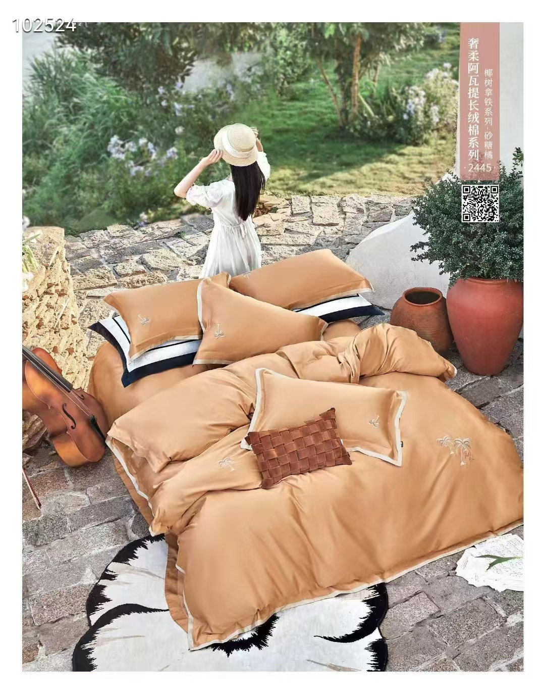 玖玖爱家纺 2025新款120支奢柔阿瓦提长绒棉四件套-椰树拿铁 椰树拿铁砂糖橘