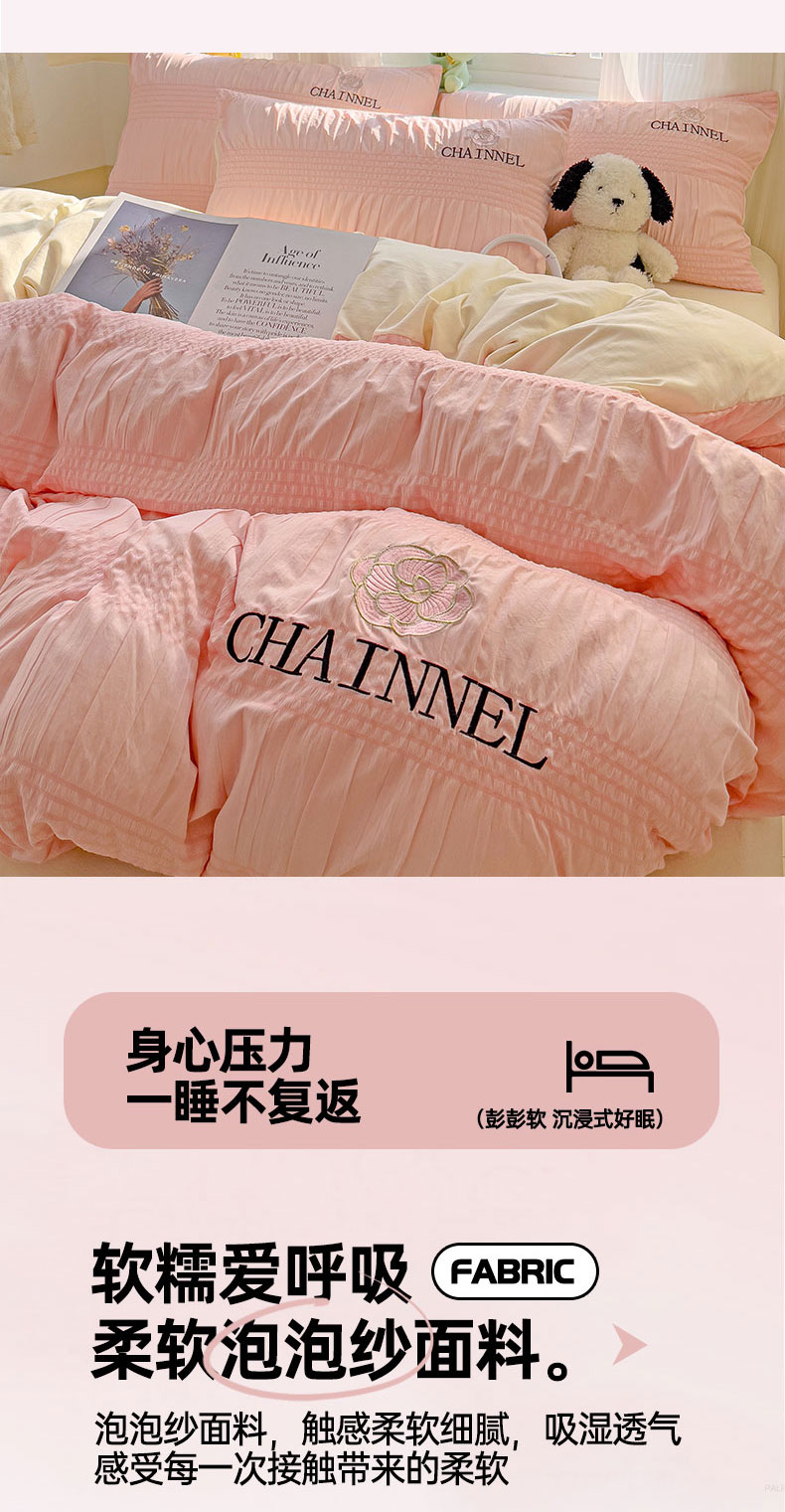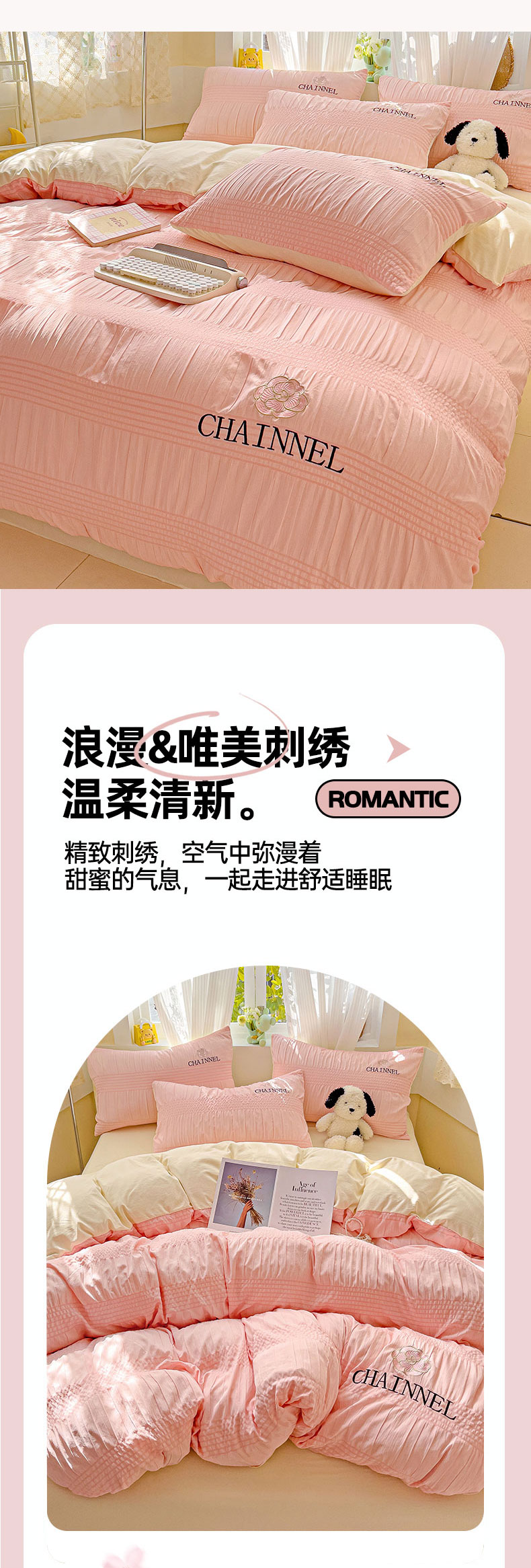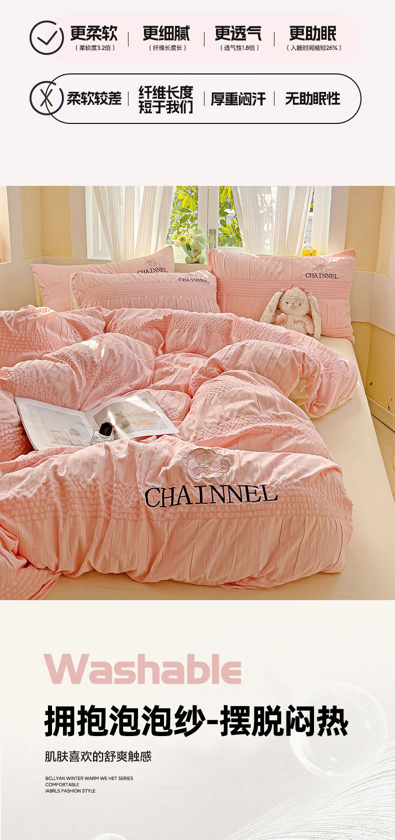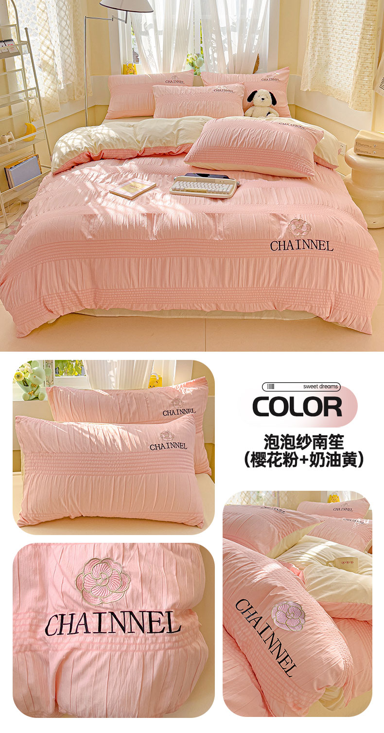 当前位置: 91家纺网 > 商品网购 > 床品套件 > 四件套 > 其它四件套 > 灰鲸 2025新款泡泡纱系列南笙刺绣四件套 泡泡纱南笙-樱花粉+奶油黄