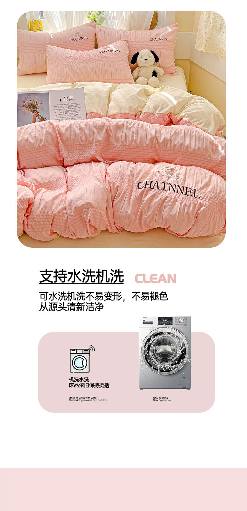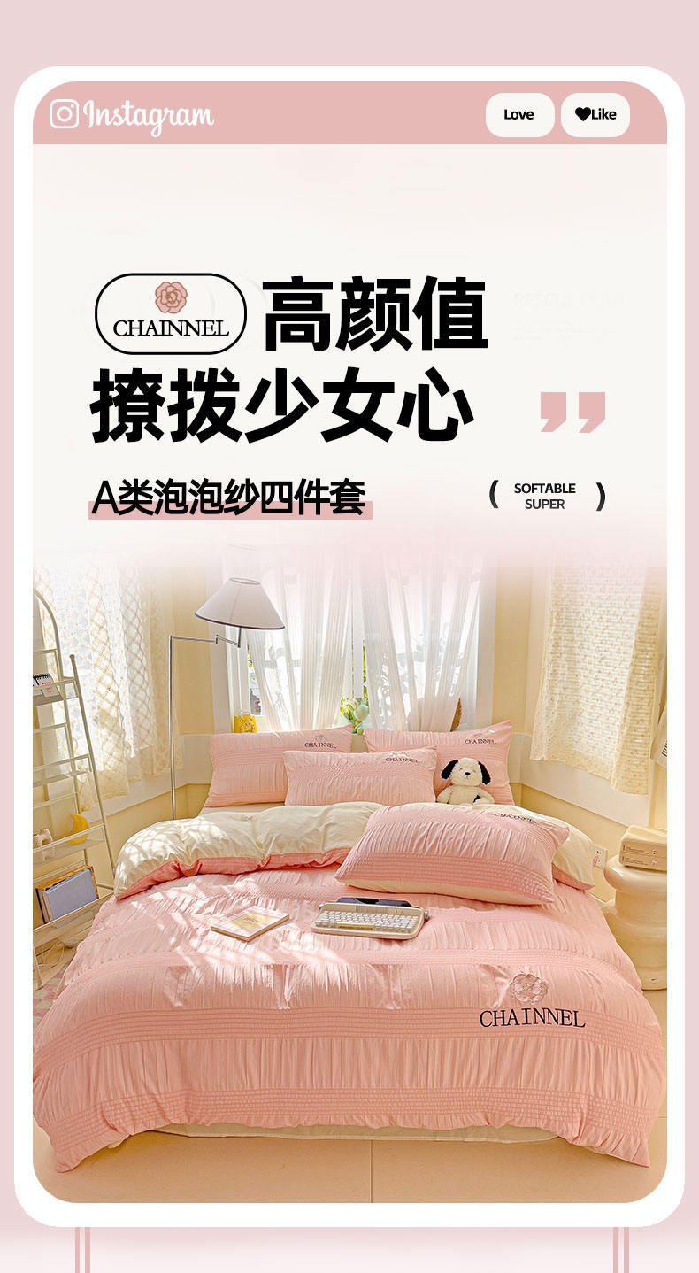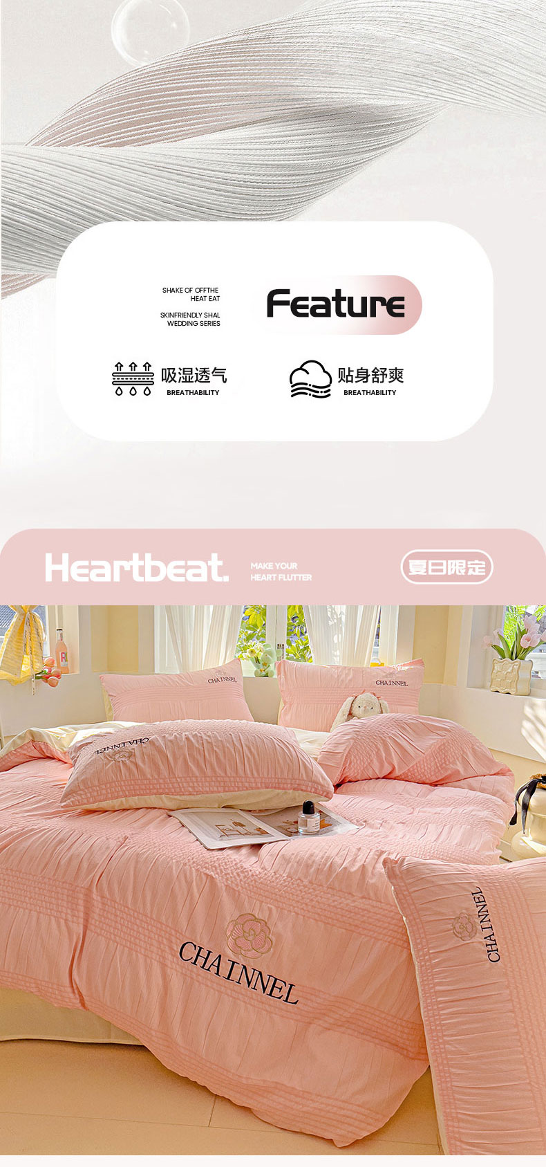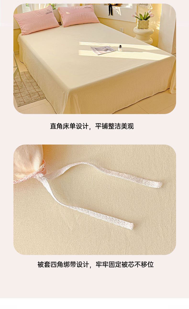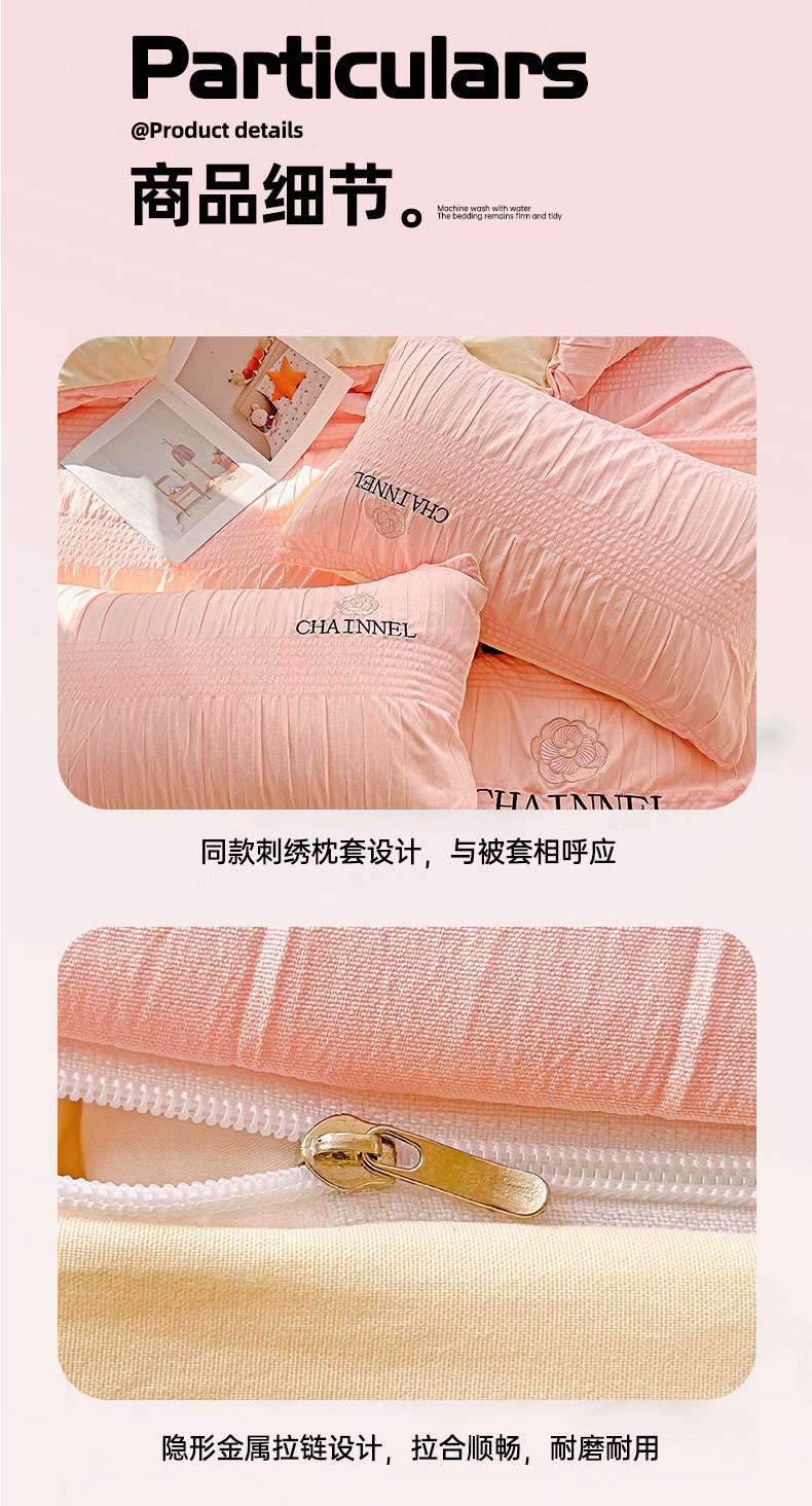 当前位置: 91家纺网 > 商品网购 > 床品套件 > 四件套 > 其它四件套 > 灰鲸 2025新款泡泡纱系列南笙刺绣四件套 泡泡纱南笙-樱花粉+奶油黄