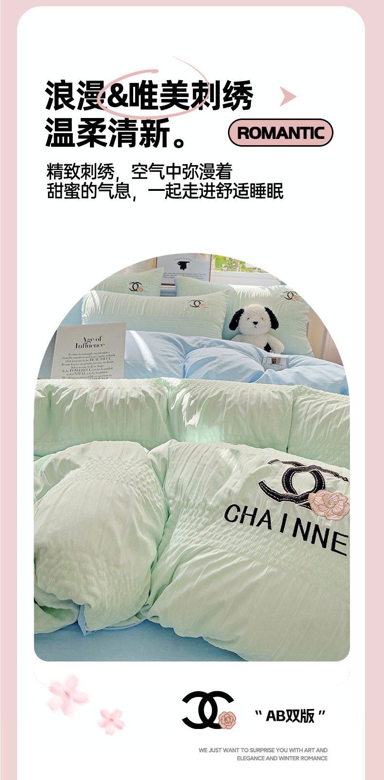 当前位置: 91家纺网 > 商品网购 > 床品套件 > 四件套 > 其它四件套 > 灰鲸 2025新款泡泡纱系列艾丽莎刺绣四件套 泡泡纱艾丽莎-薄荷绿+天空蓝