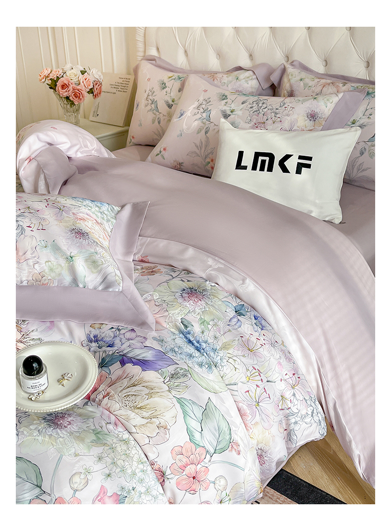 蓝米卡夫 2025新品-60S天丝大提花+数码印花拼角宽边四件套(礼盒包装) 花海秘境-紫