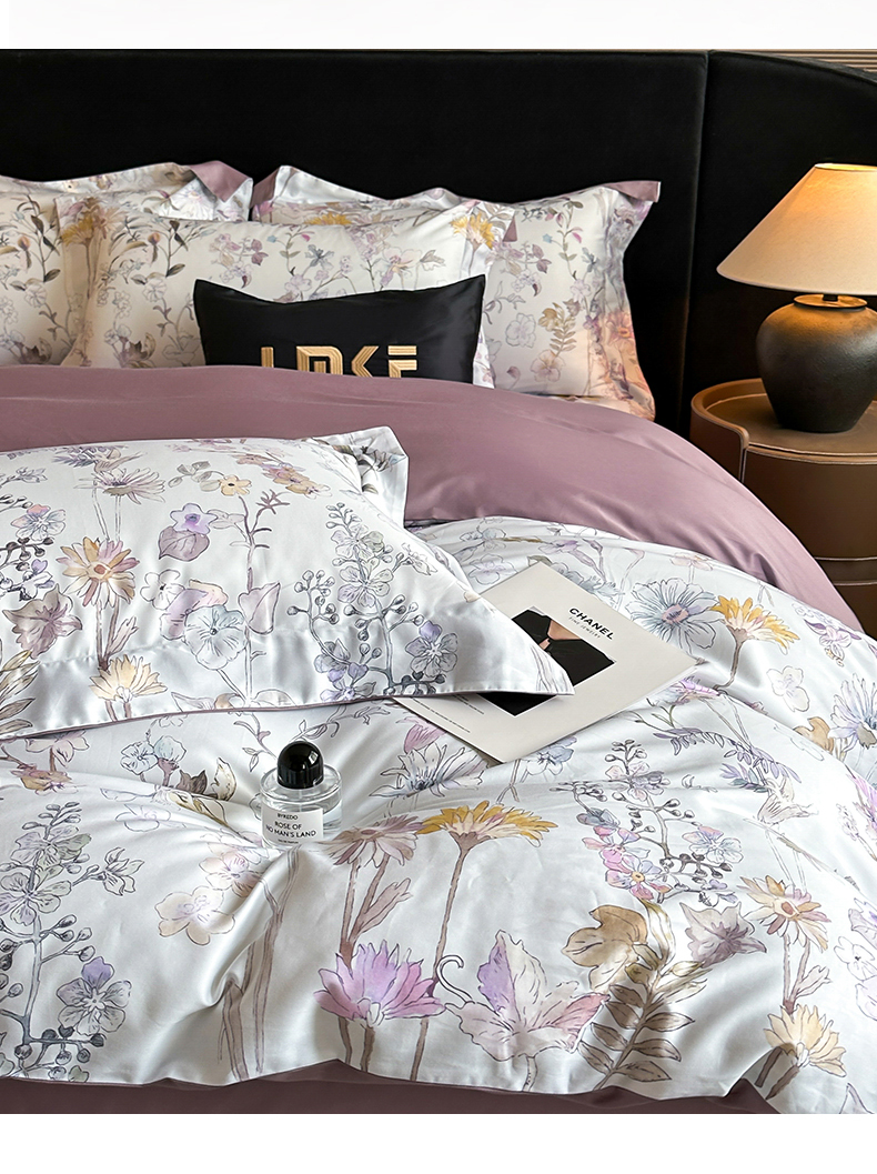 蓝米卡夫 2025新品-60S全棉数码印花长绒棉四件套(礼盒包装) 空谷幽兰-紫