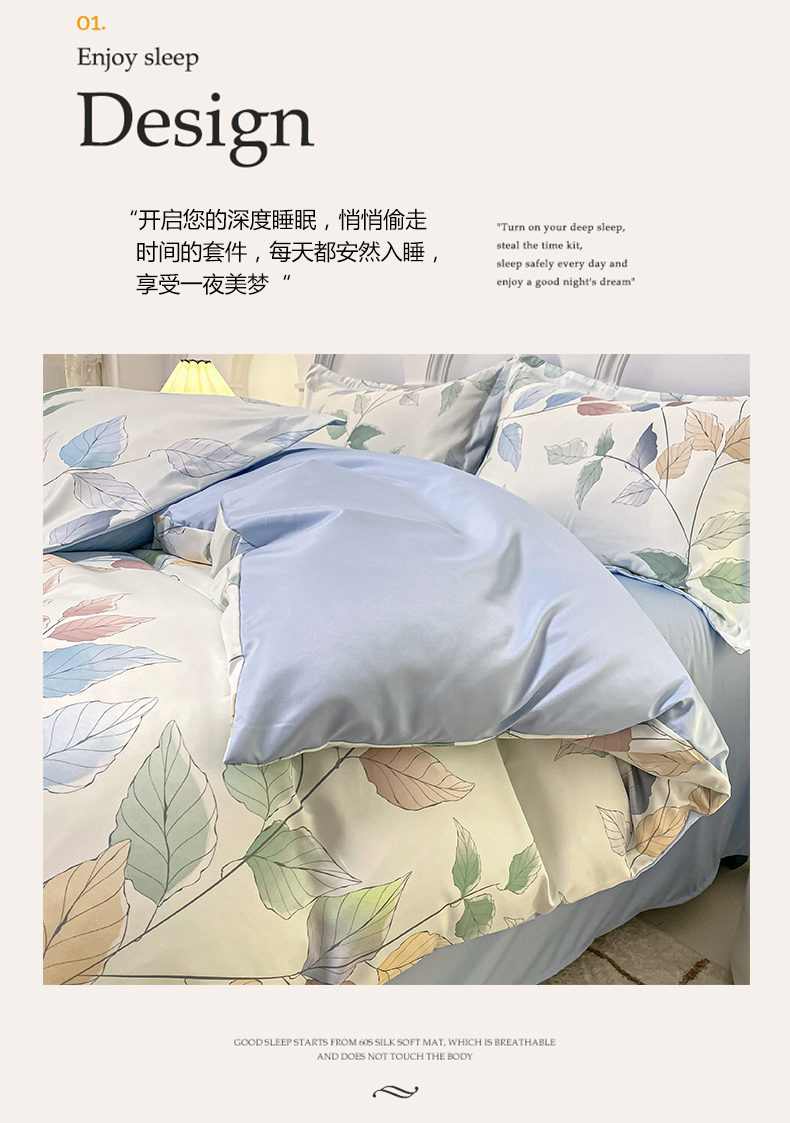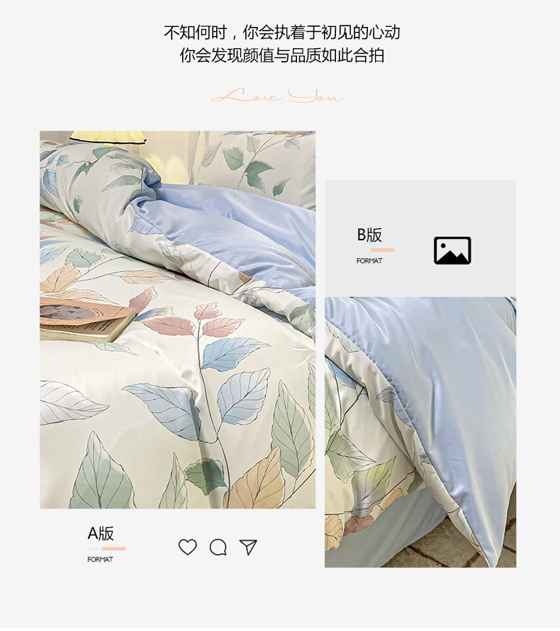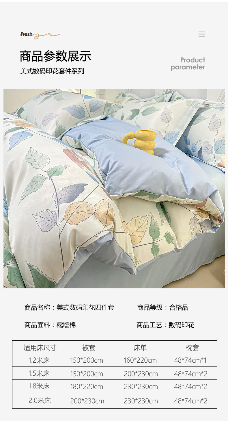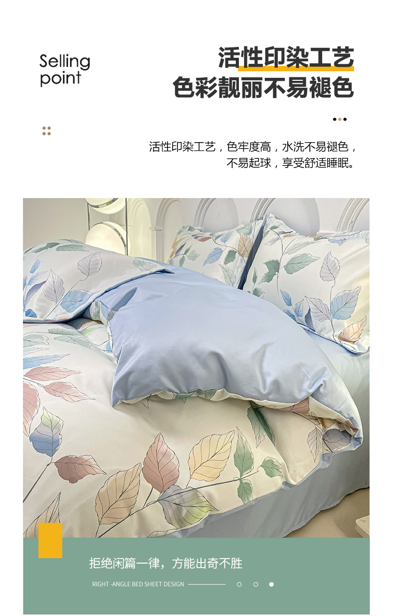 商品名称:悦织湾2025新款冰丝印花四件套美式数码轻奢时尚学生三件套宿舍单双人床上用品4件套 柳叶绿