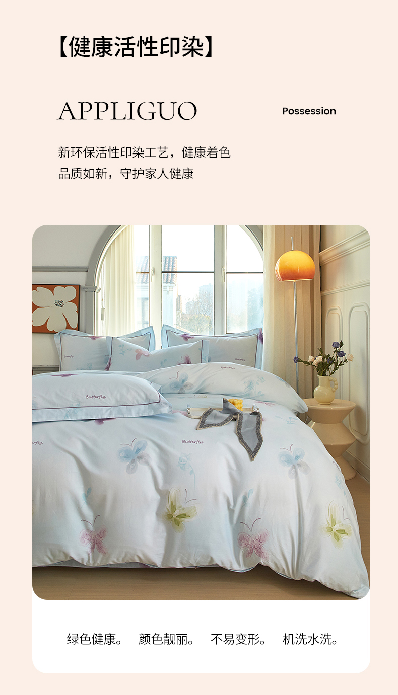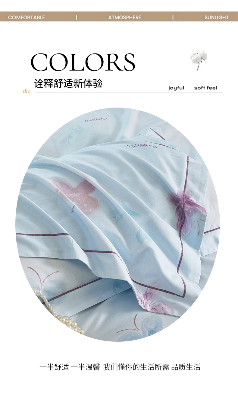 商品名称:启航家居 2025春夏全棉铂金棉数码印花四件套 润蝶兰