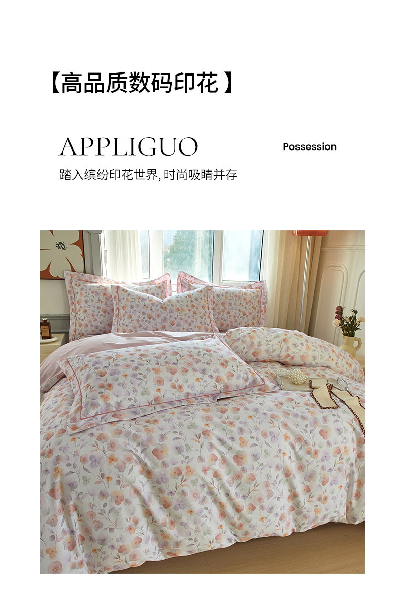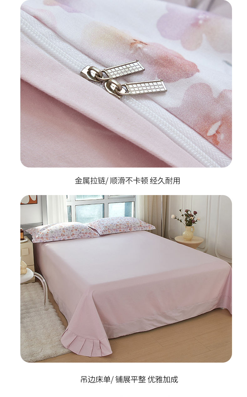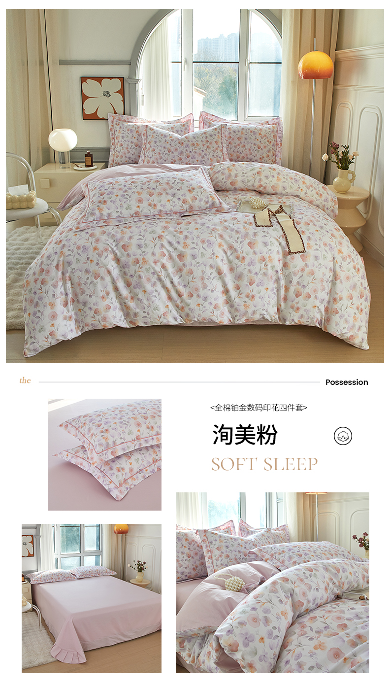 商品名称:启航家居 2025春夏全棉铂金棉数码印花四件套 洵美粉