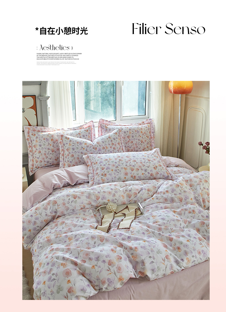 启航家居 2025春夏全棉铂金棉数码印花四件套 洵美粉